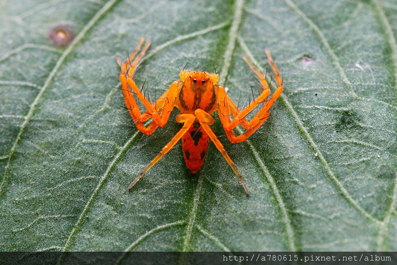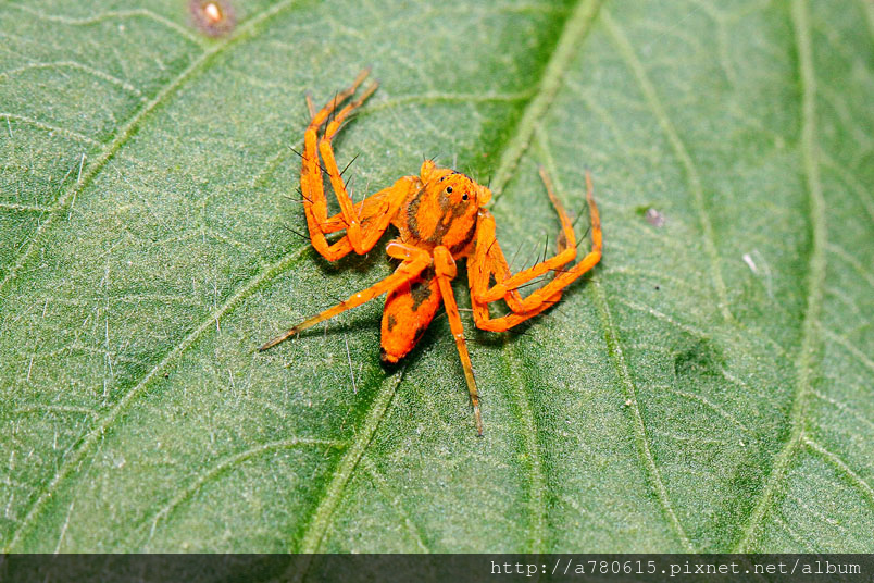 圓頭貓蛛,體背橙褐色的個體。分布於低海拔山區,種別不詳。