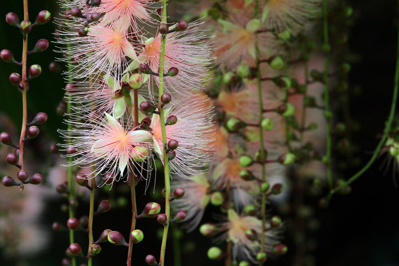 如粉撲,白天看似珠簾垂落,每到夜晚盛開時,就像夏日的燦爛