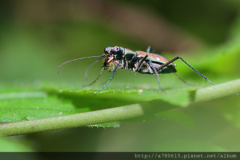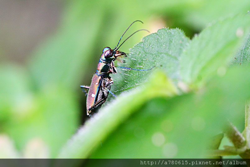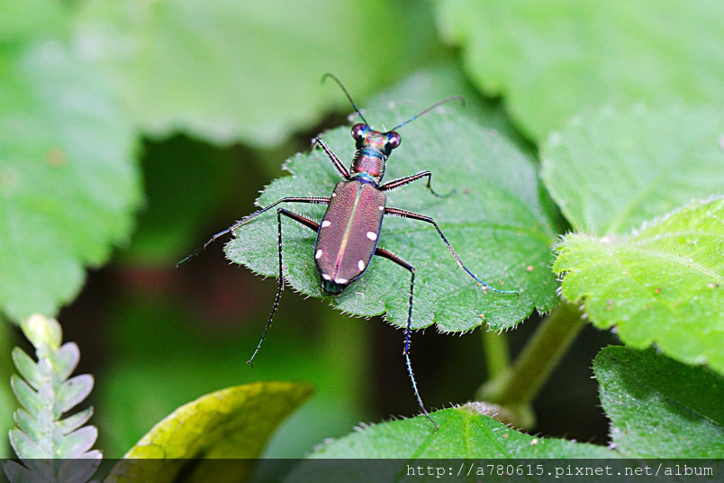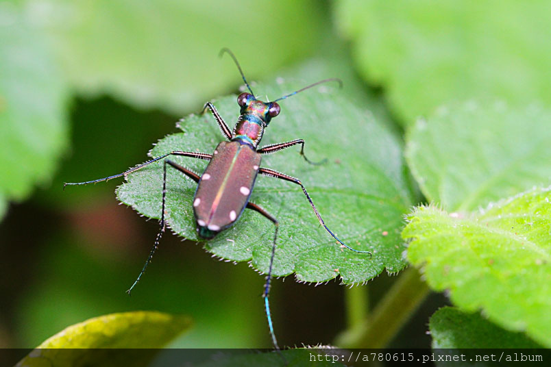 台灣八星虎甲蟲,又稱引路蟲,翅背有8枚白斑,近翅肩的斑點較