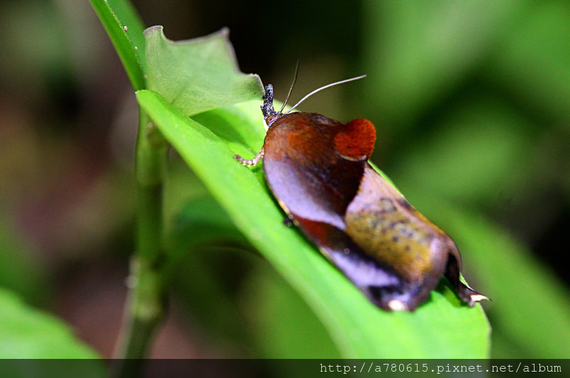 發達。翅背面底色為黑褐色,前翅前緣1/3處到頂角呈栗褐色,