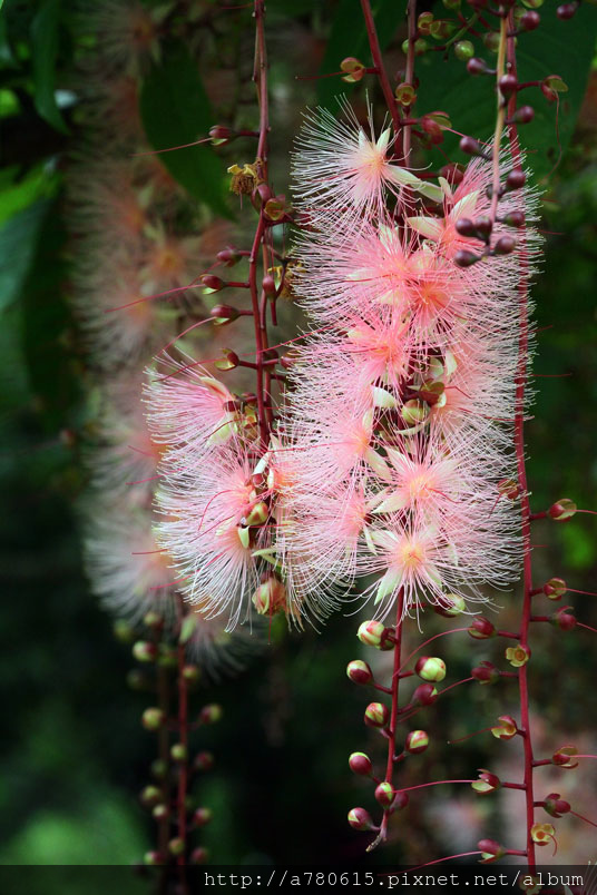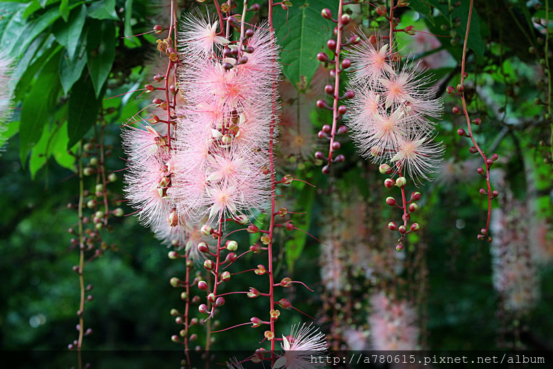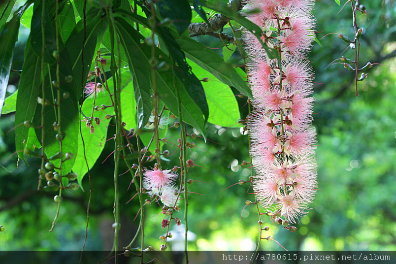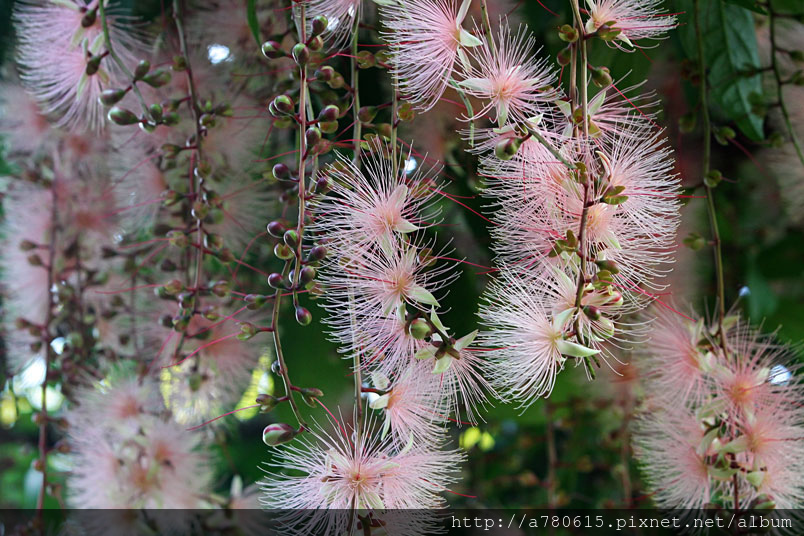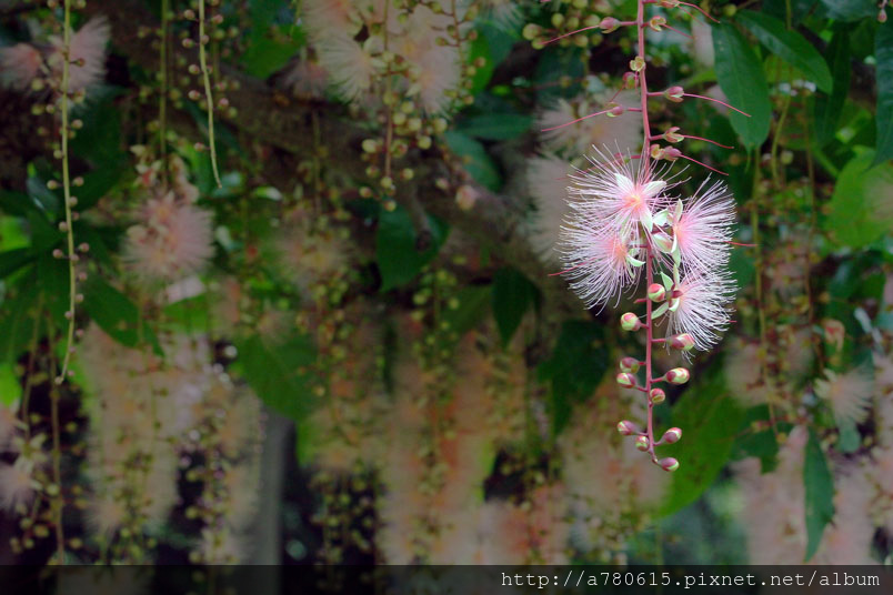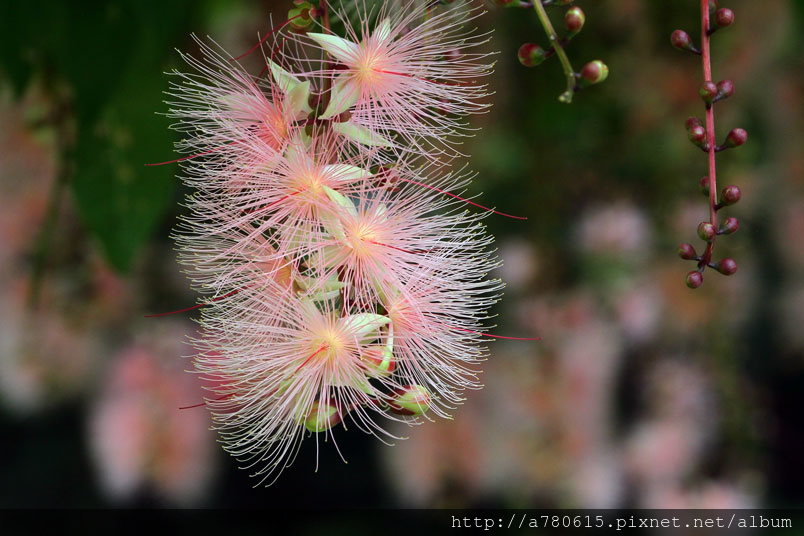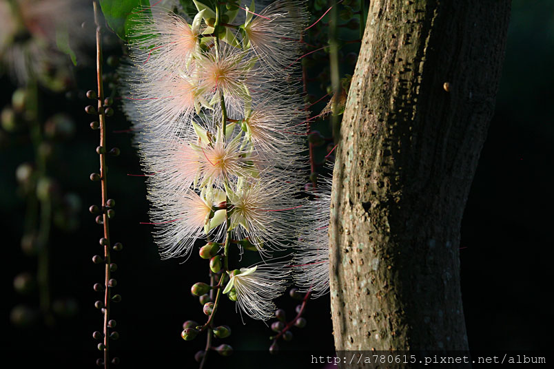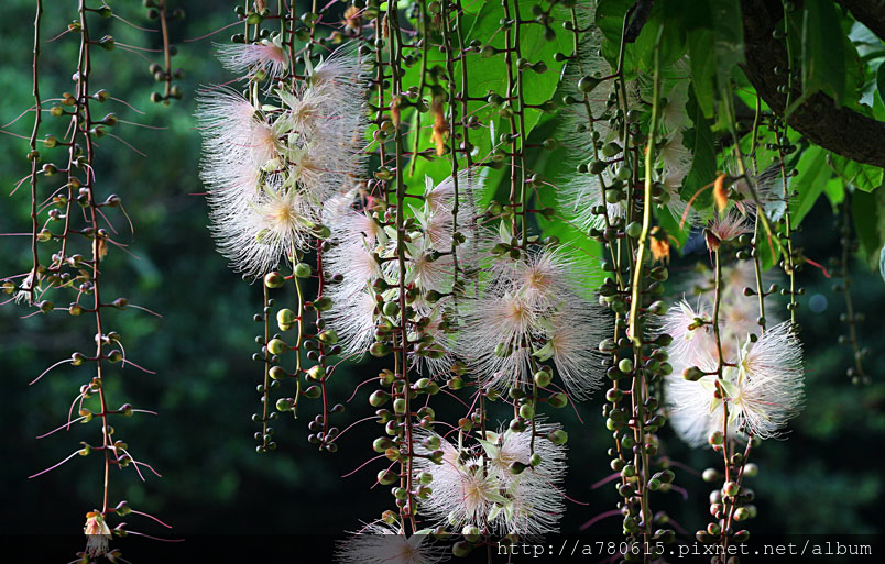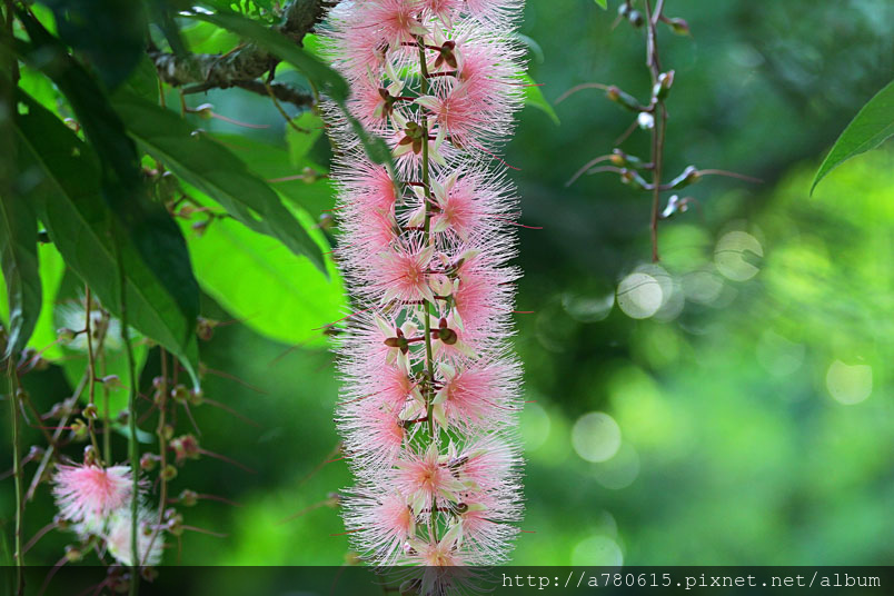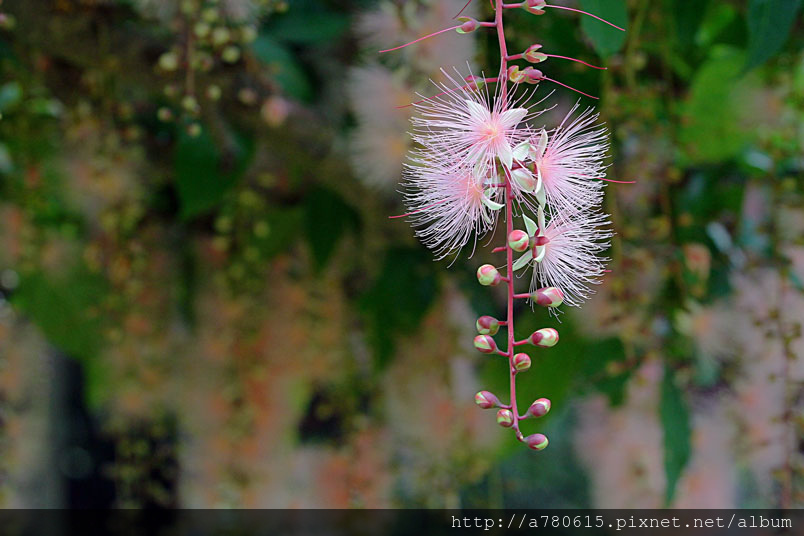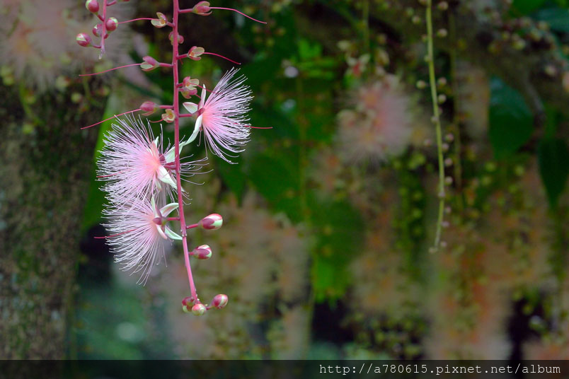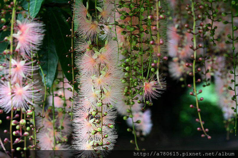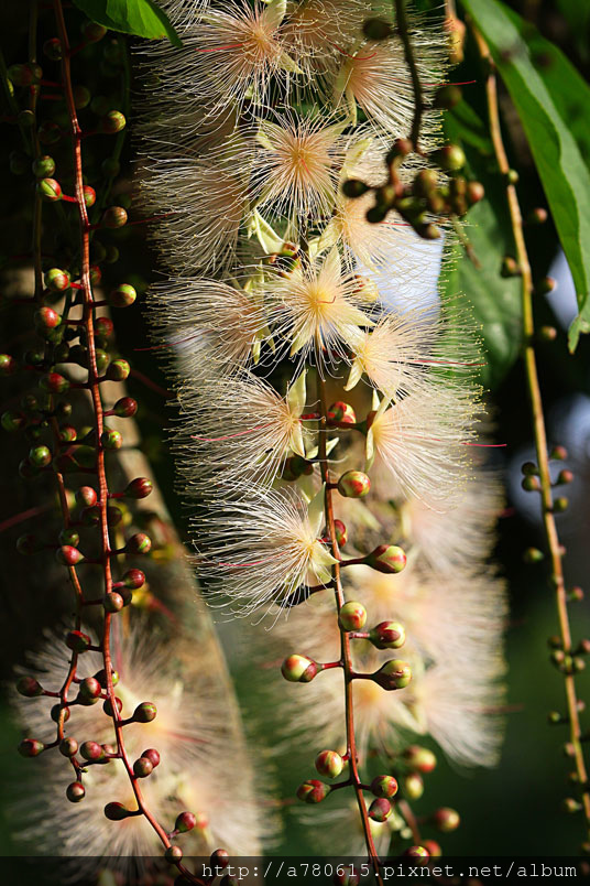 穗花棋盤腳花朵綻放時,吐露出千絲萬縷的細密花蕊,有如夜空