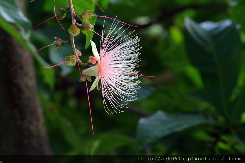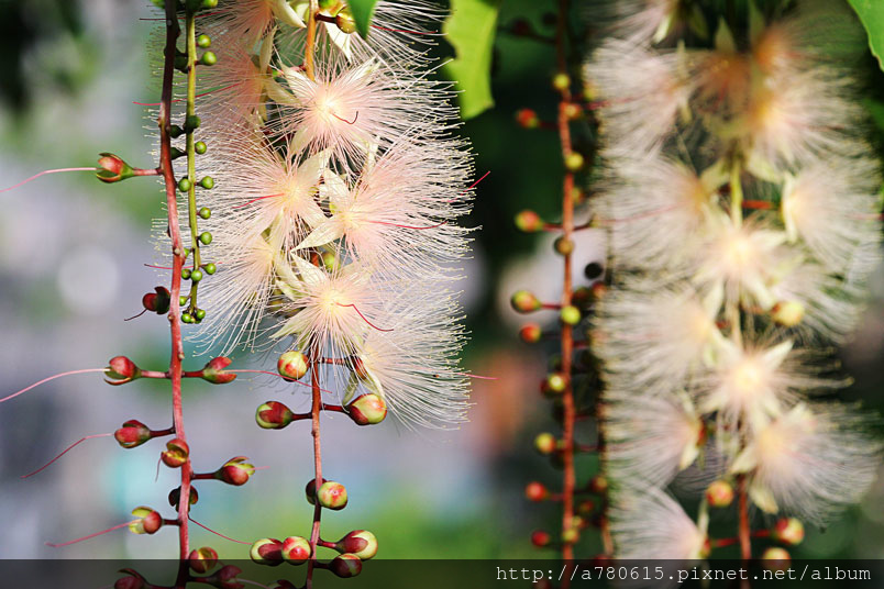穗花棋盤腳的花朵,以白色及粉紅色系為主,白色清純,粉紅嬌