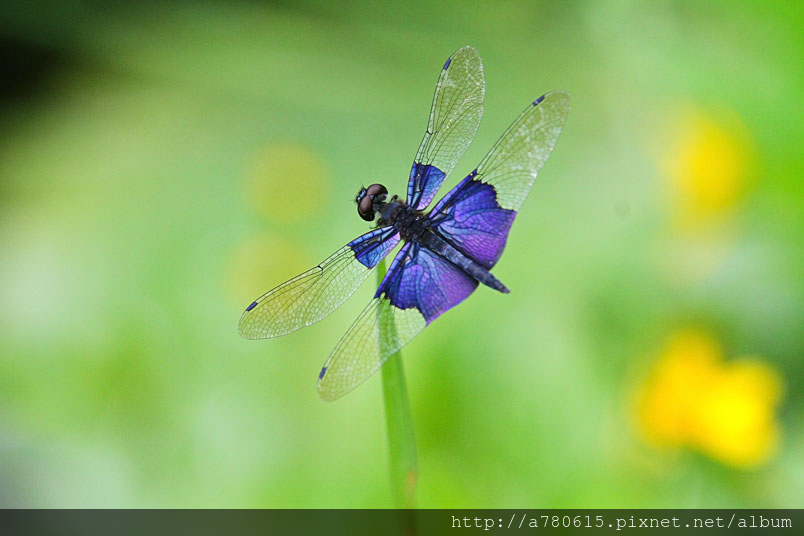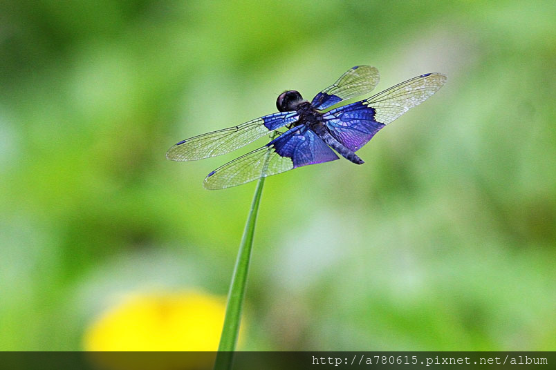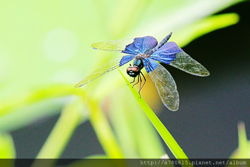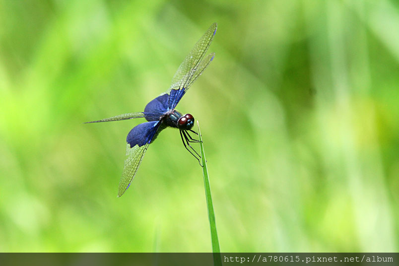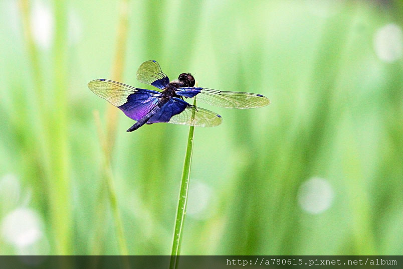 而圍繞在池邊的寶石藍三角蜻蜓 ,就是我想捕捉的美麗身影。