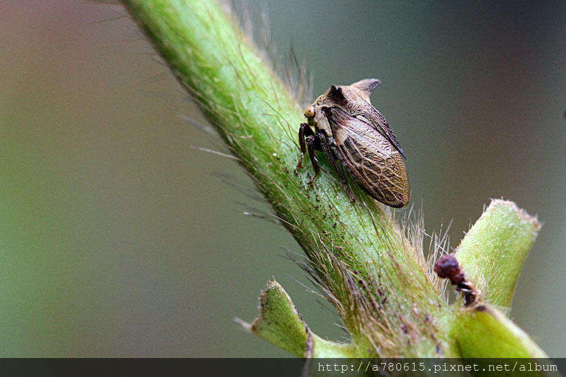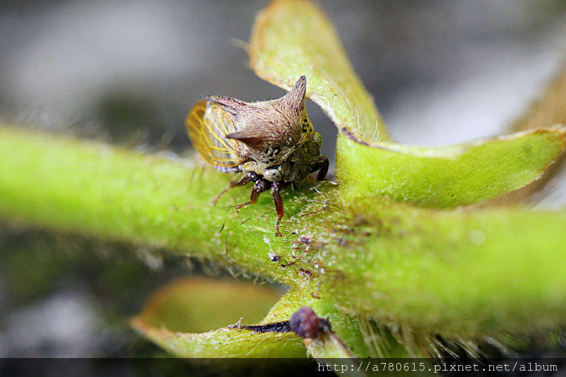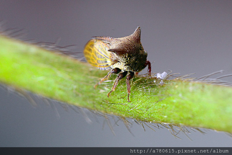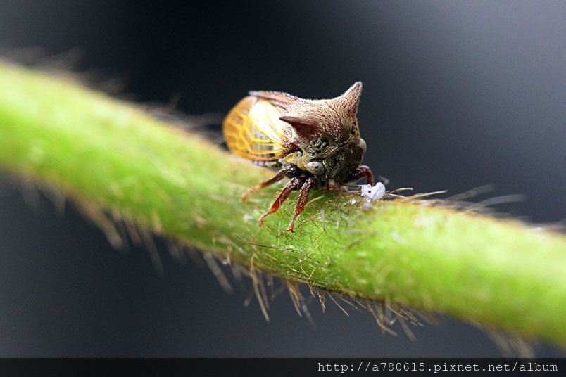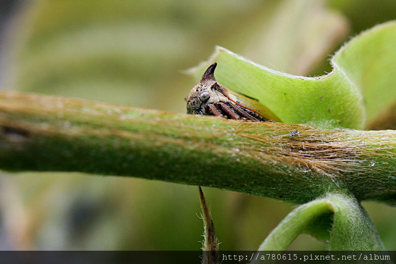 三刺角蟬,角蟬科 / 三刺角蟬屬,體長僅有6.3mm,頭胸部沒有