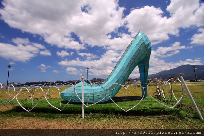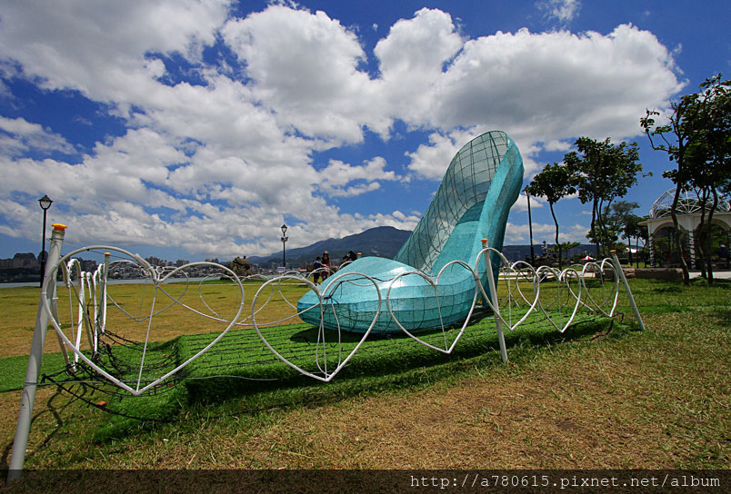 「淡水明眸」鏤空的眼睛,從眼裡可以看到淡水河美景。