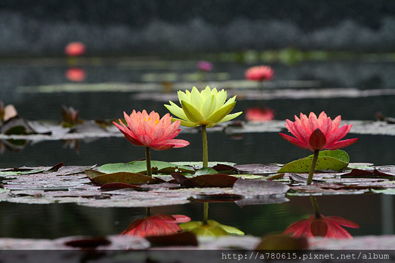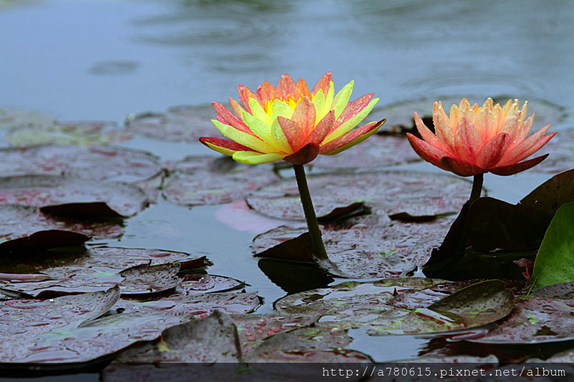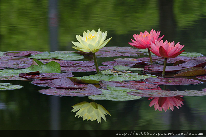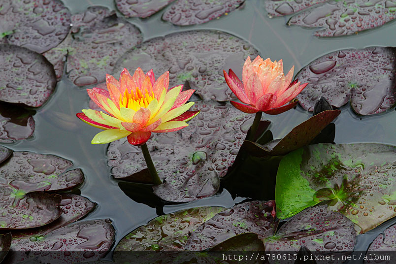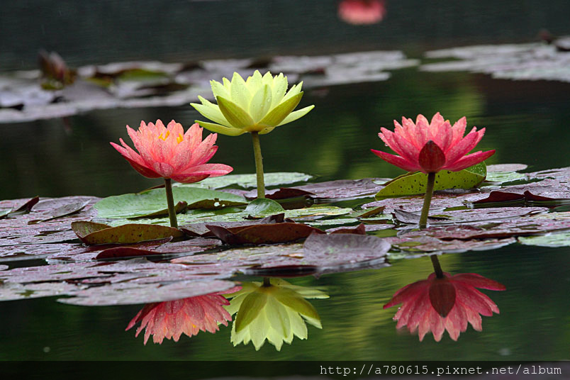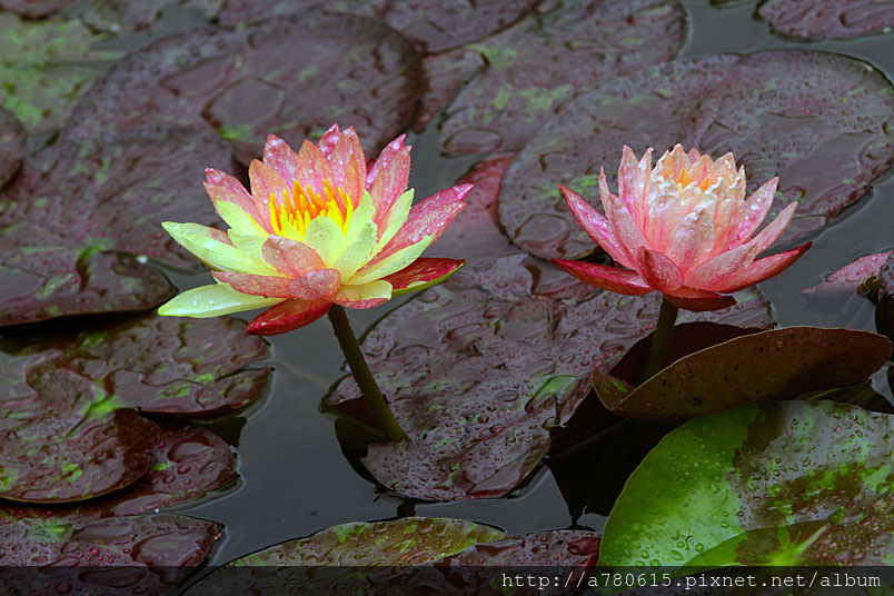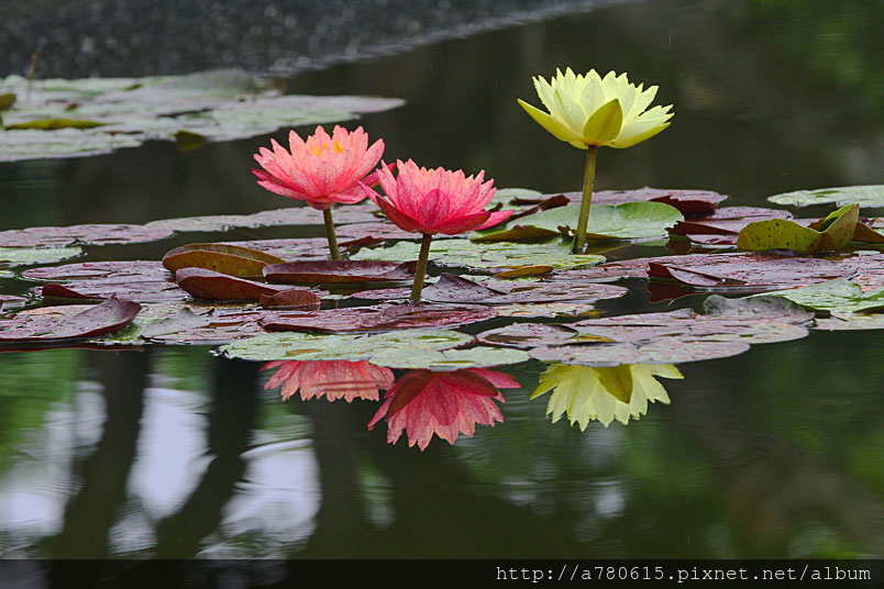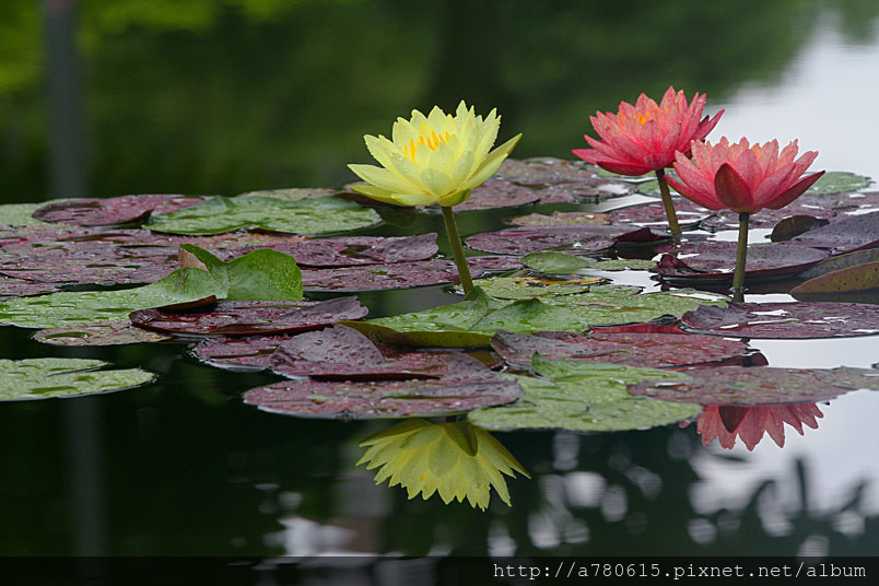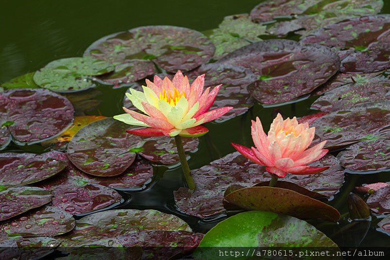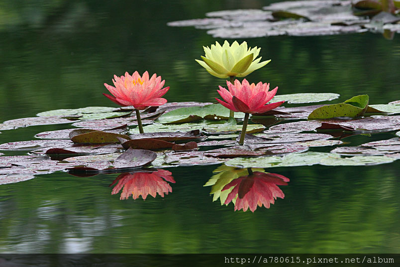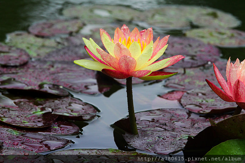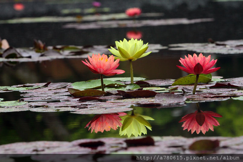 有時會開出紅黃鑲嵌、純黃、純紅的花,這在睡蓮屬植物中實屬罕見