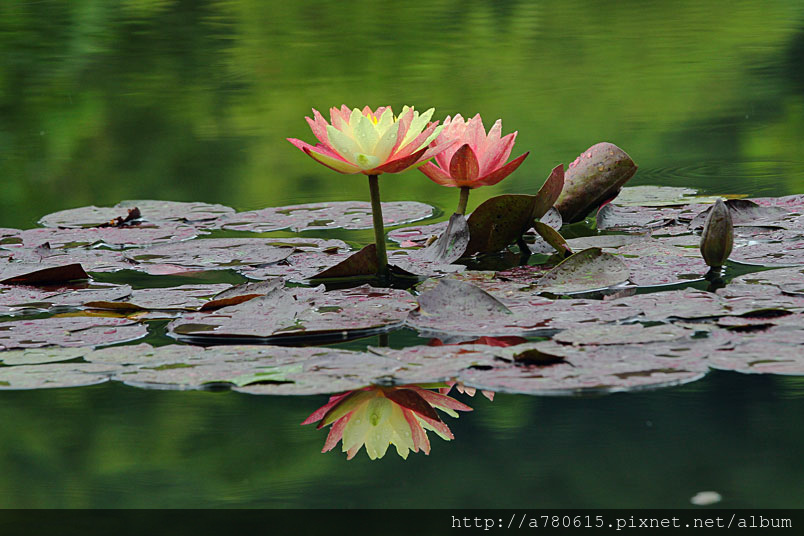 。整個荷花池裡就僅有一朵,而兩種顏色的花是一種偶發現象,能親