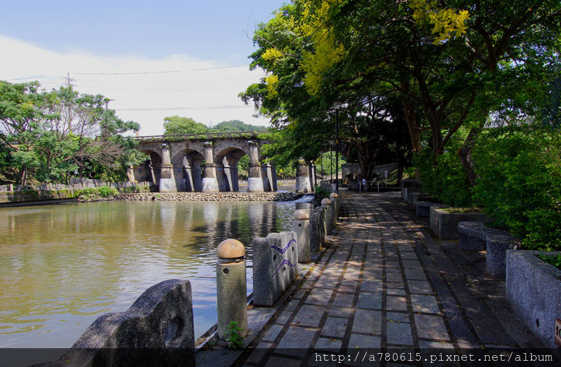 沿著河岸步道漫遊,就可看到又名彩鳳橋的東安古橋,這座日據