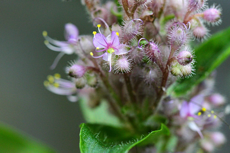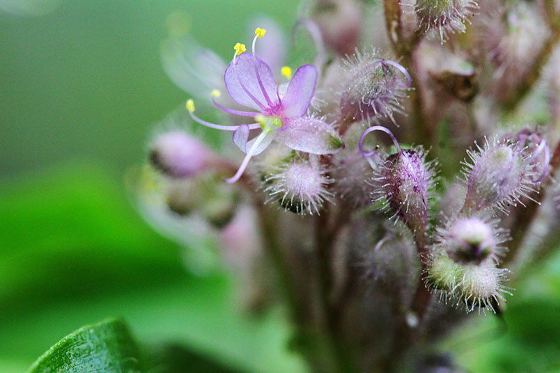 花萼上密集生長半透明的毛絨,毛絨的前端有個透明的圓形