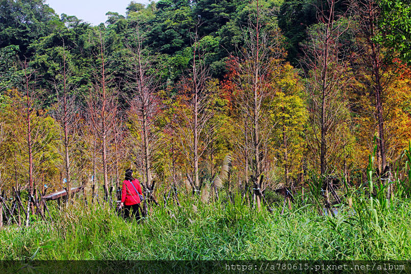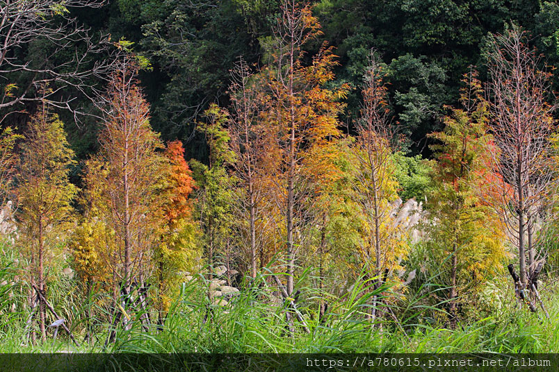 月眉濕地的落羽松雖然今年才種下,樹型不夠俊美,但冷空氣一催