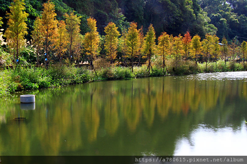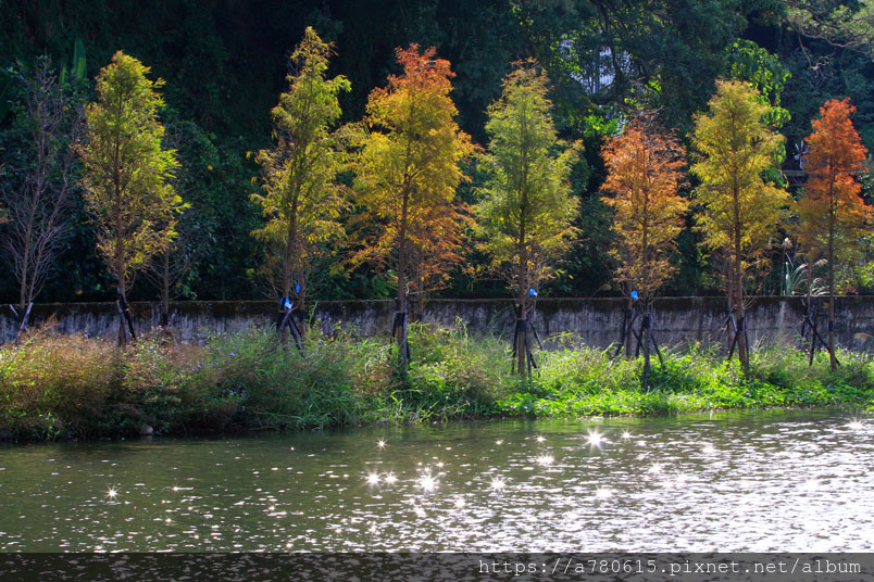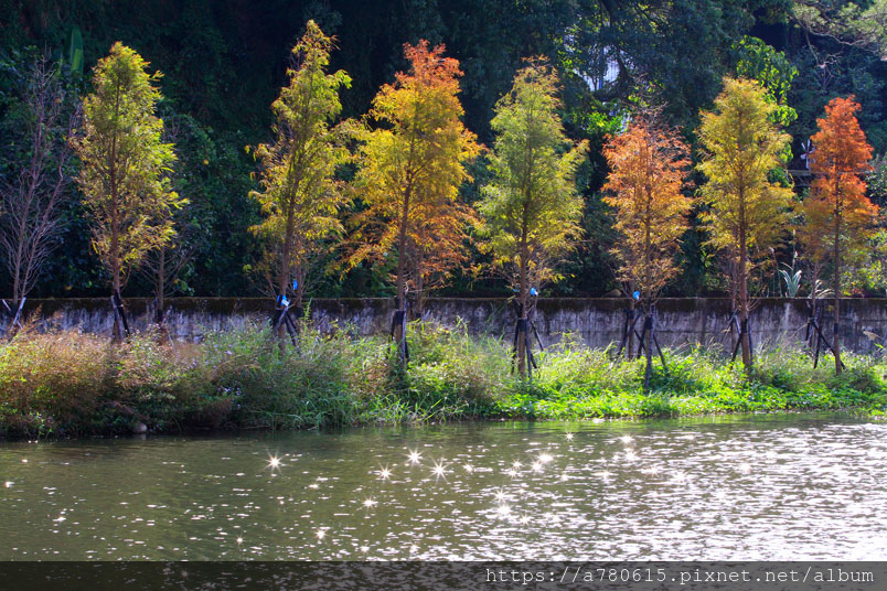 陽光灑落的池面波光粼粼,用小光圈拍出小小星芒也蠻美的。