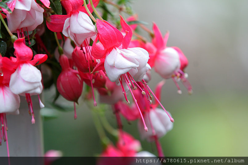 吊鐘花,柳葉菜科、倒掛金鐘屬,枝條柔軟,伸長後具懸垂性。
