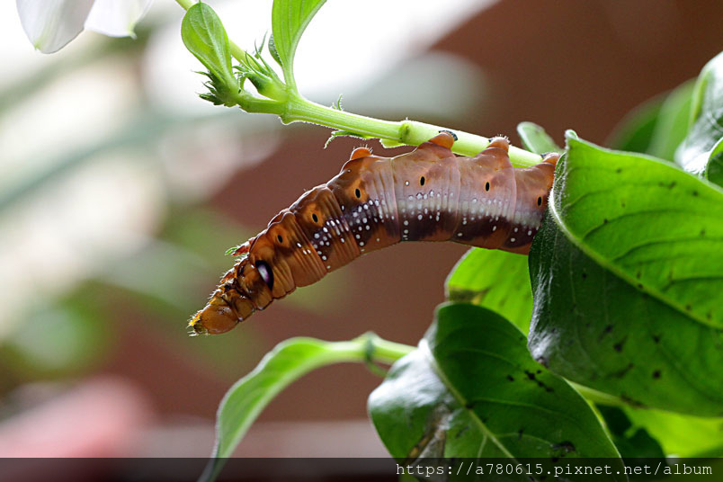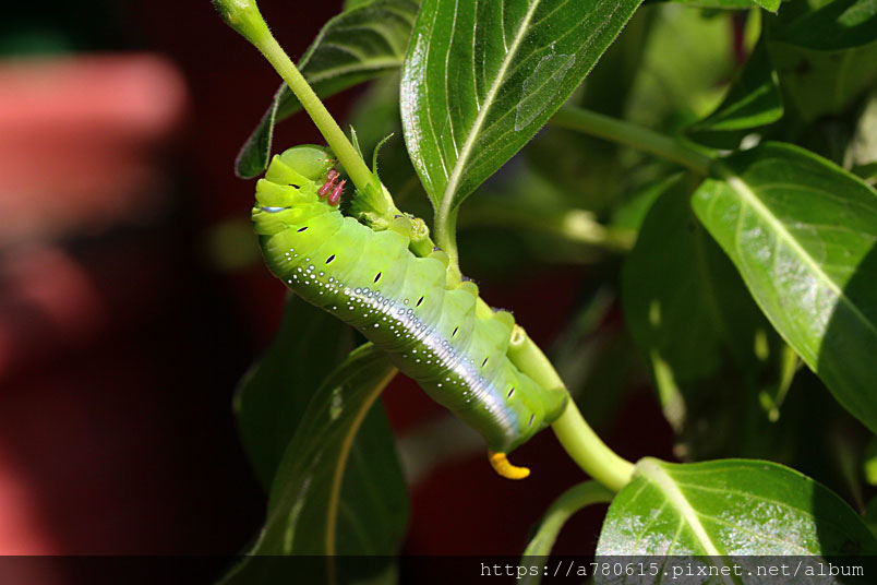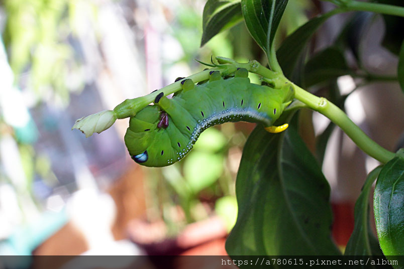朋友送了我3隻夾竹桃天蛾的幼蟲,為了養活牠們,到花市買了一