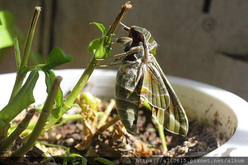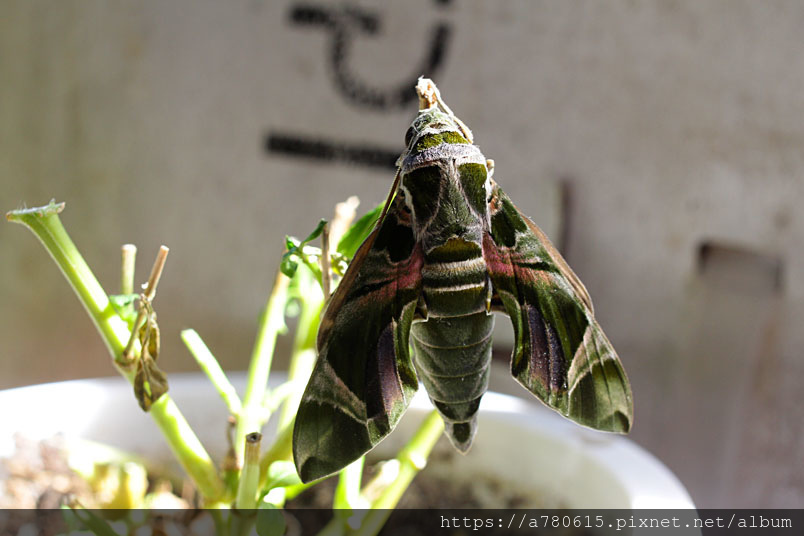 夾竹桃天蛾,天蛾科,展翅80~90mm,體色底色灰綠色或橄欖綠,前
