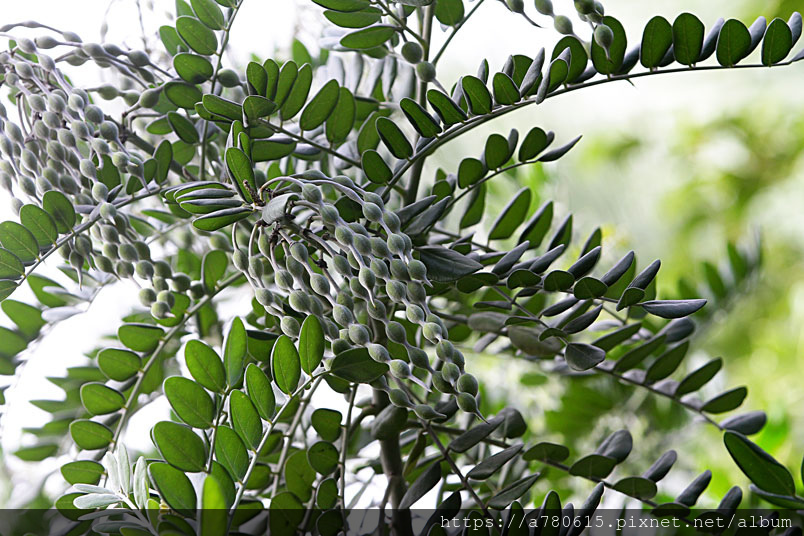 奇數羽狀複葉,厚肉質,小葉橢圓形,葉片在莖上是呈互生狀排