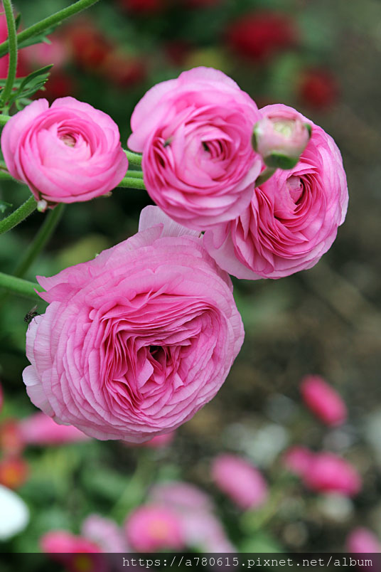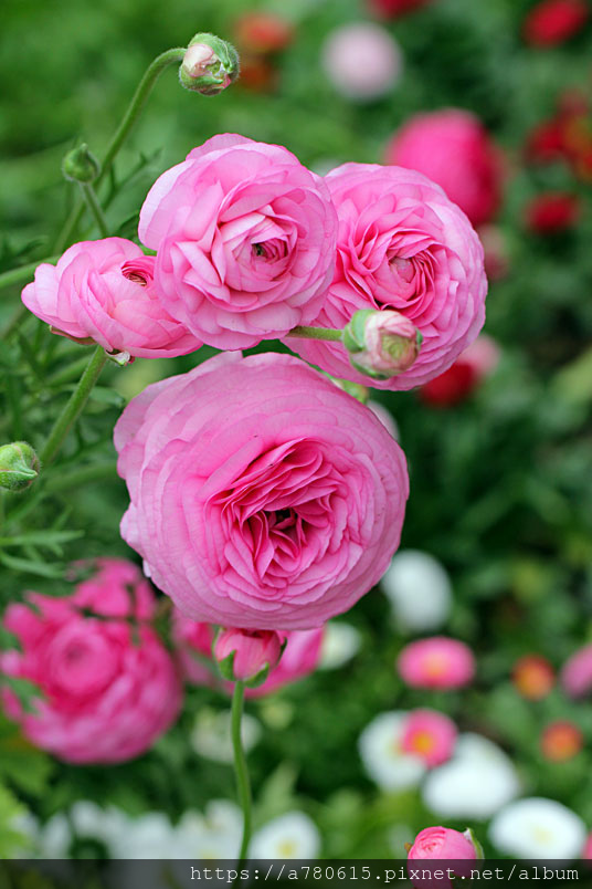 今的品種多為大花重辦品種,花徑可達5-10公分,花色鮮豔豐富,有