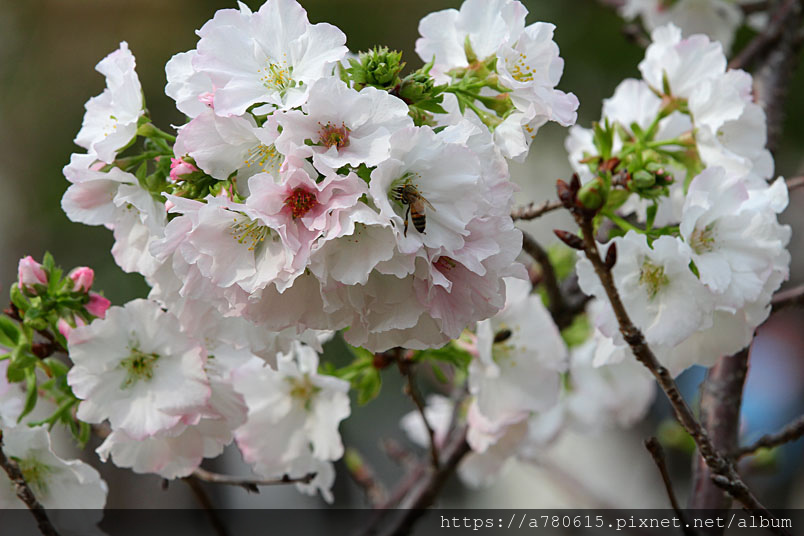 墨染櫻在台灣初開時純白淡雅,幾天的時間後慢慢轉為如水墨般暈
