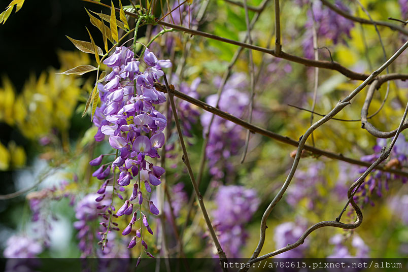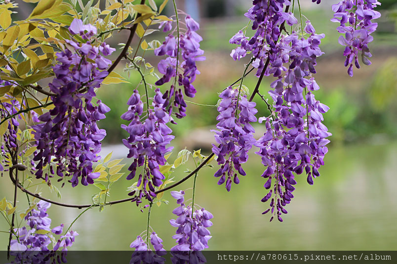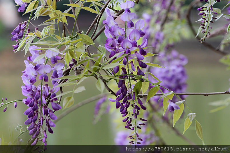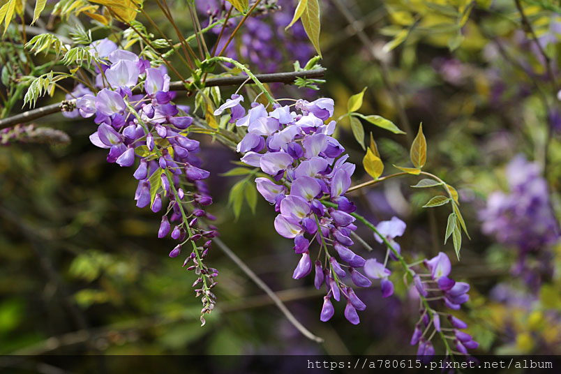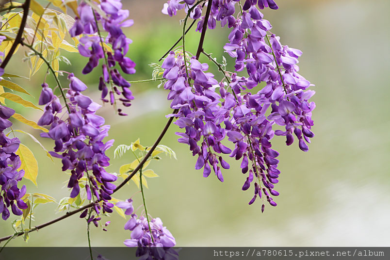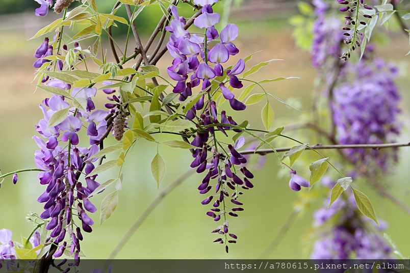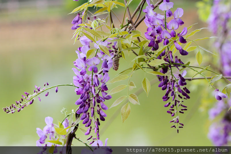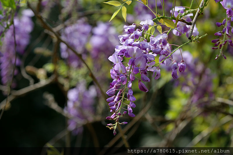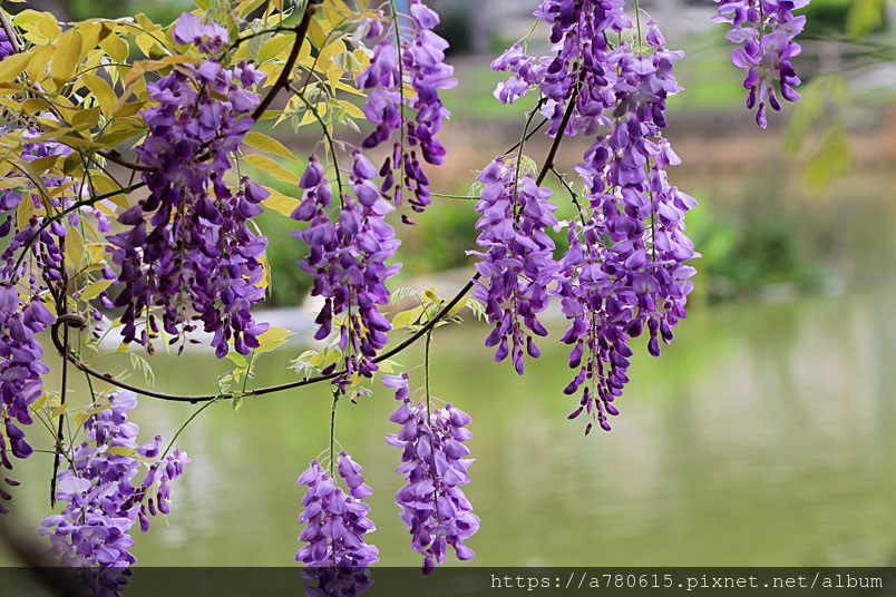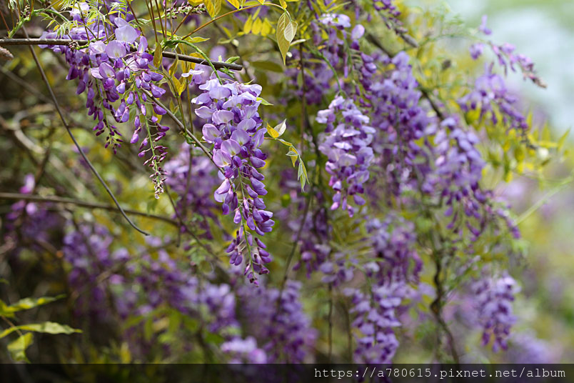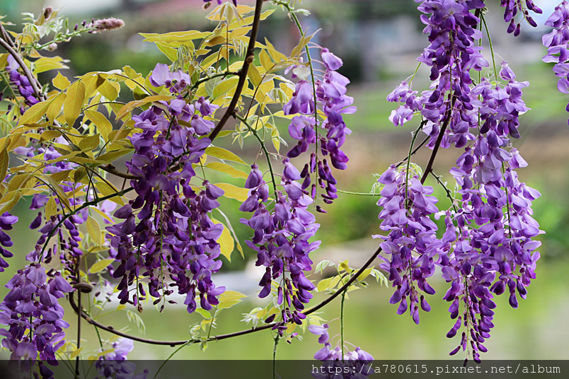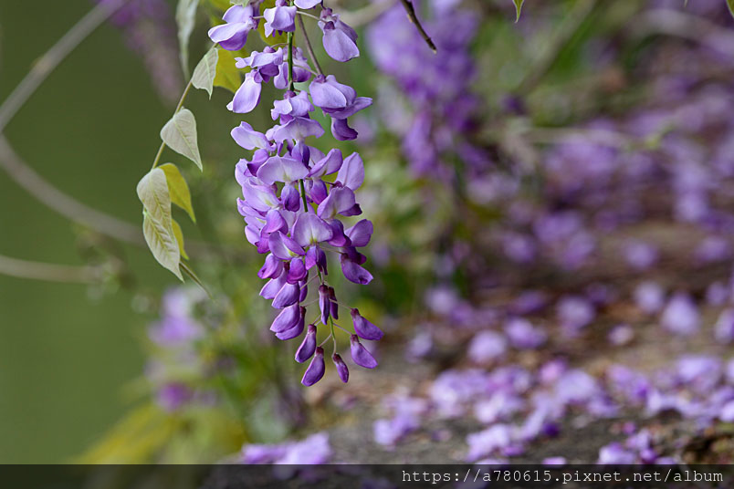 每當紫藤花盛開時,微風徐徐吹來撥動那彷若驪珠紫色花瓣,應