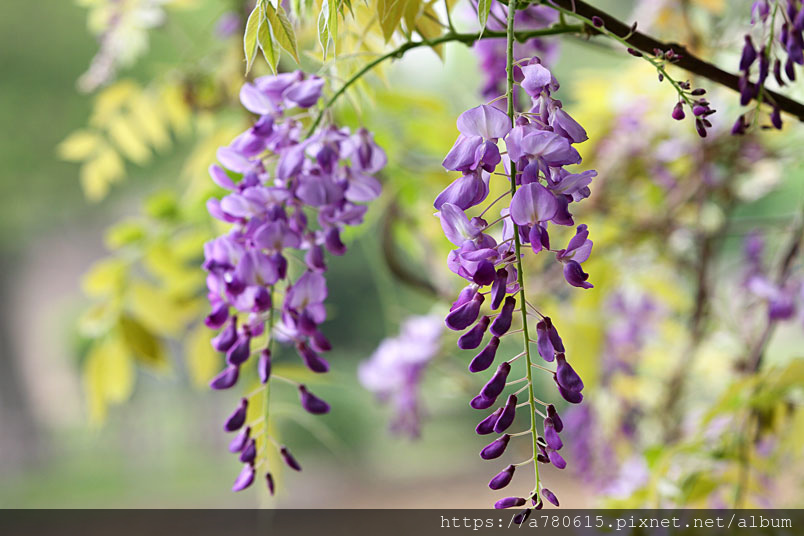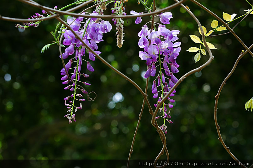 似蝶,串串花如葡萄懸垂,棚下乘涼,賞花聞香,令人心曠神怡