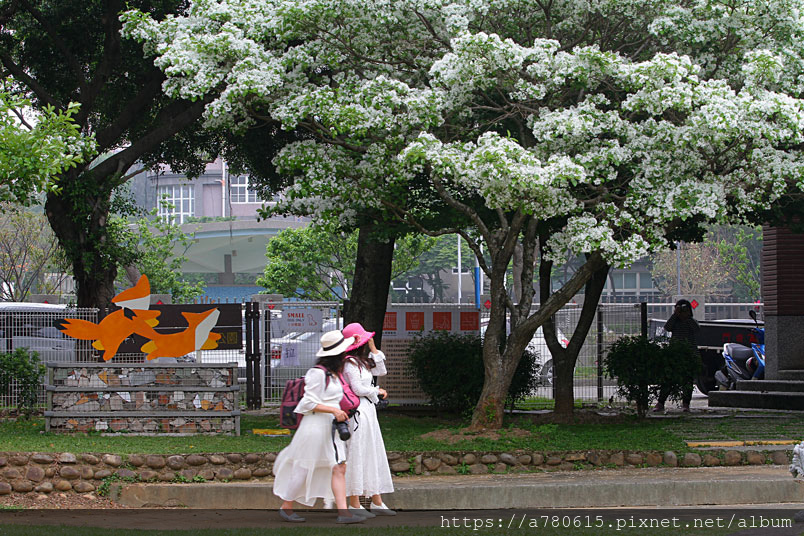 湖紀念公園吧,無論是垂掛藤架的紫色風鈴或是如白雪般盛放的