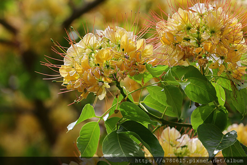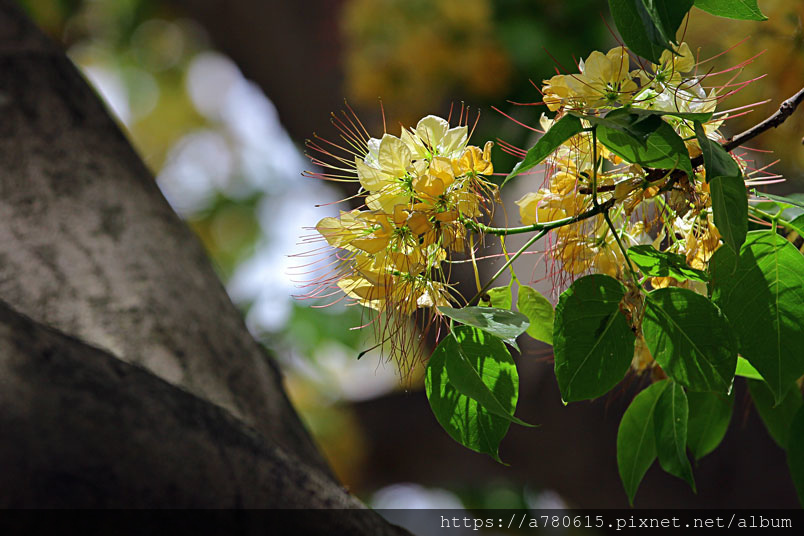 懾住,魚木花吹雪,或是掉落滿地的花瓣鋪成金黃地毯,將生冷
