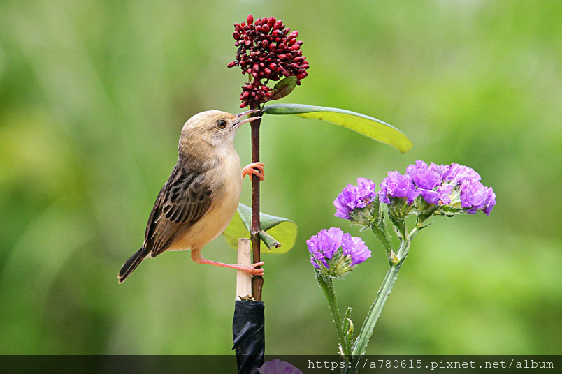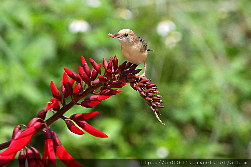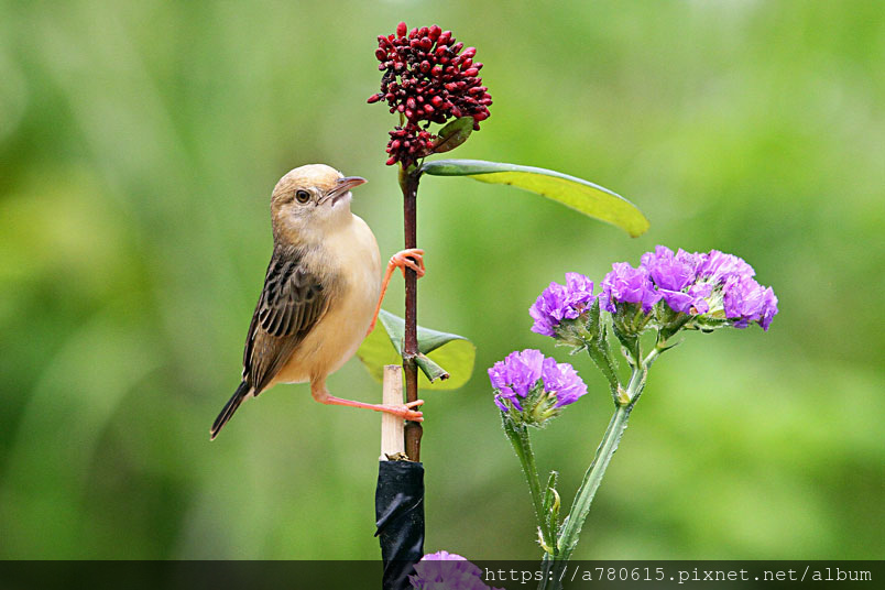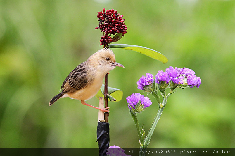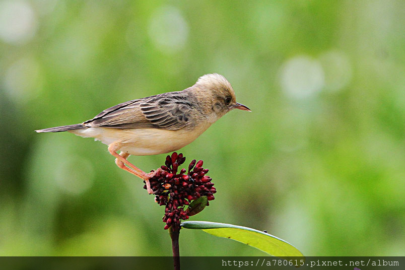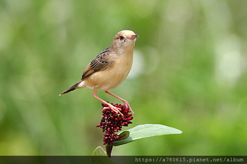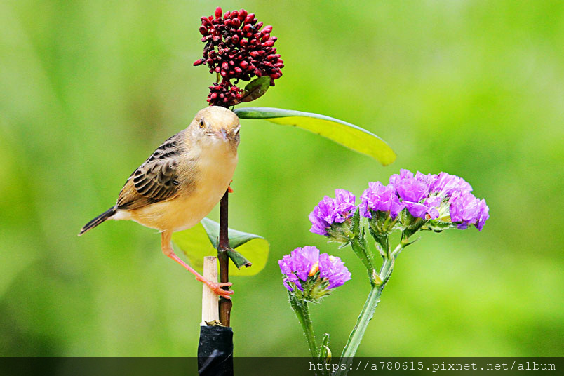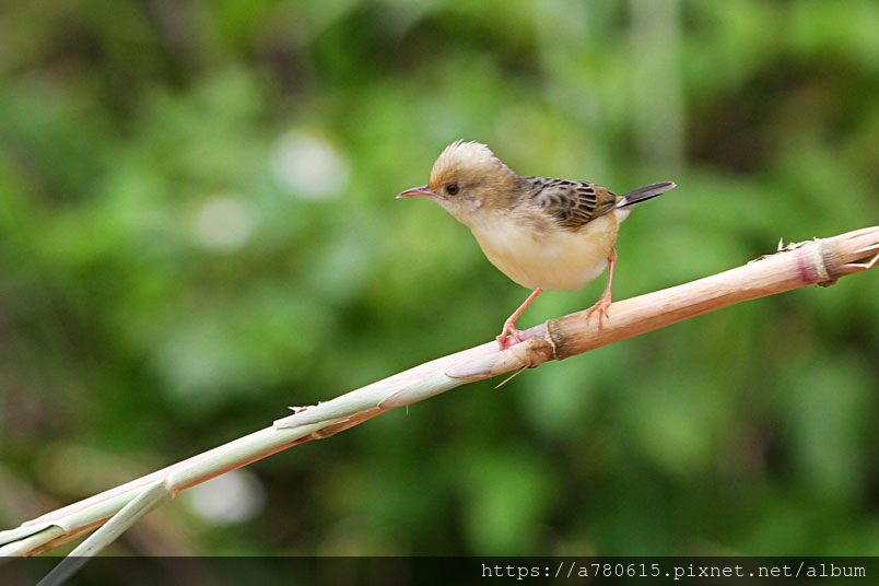 黃頭扇尾鶯,體長只有12cm,為台灣特有亞種,此“黃頭”之名