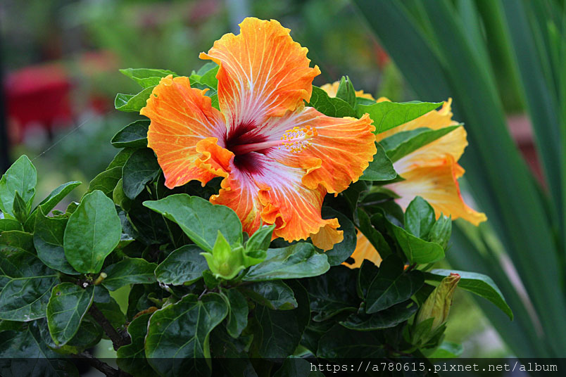 朱槿品種繁多,花形不同,花色鮮艷,在棋盤花園可以見到比