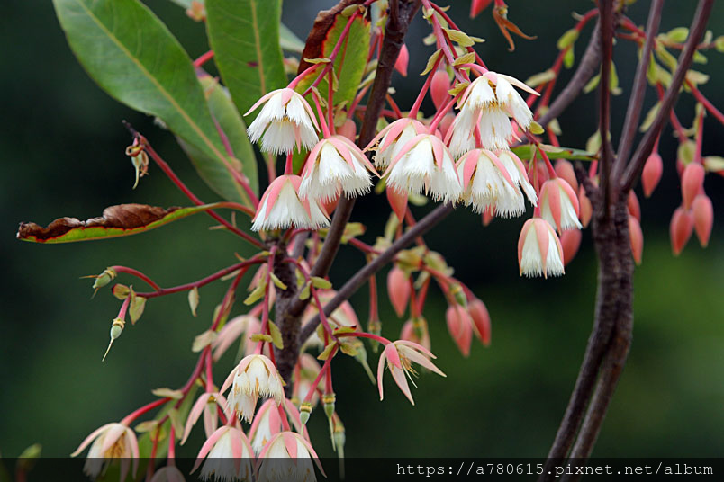 水石榕在夏季初開花結果,花朵及果實垂掛在枝椏上,花朵濃