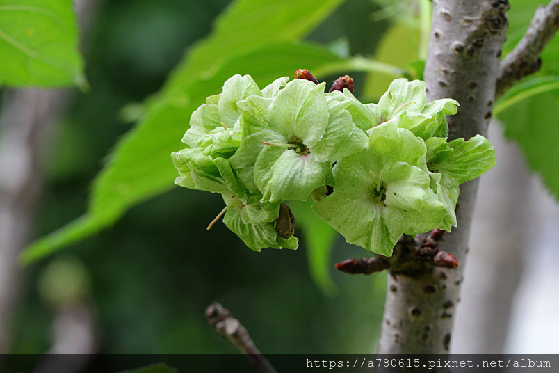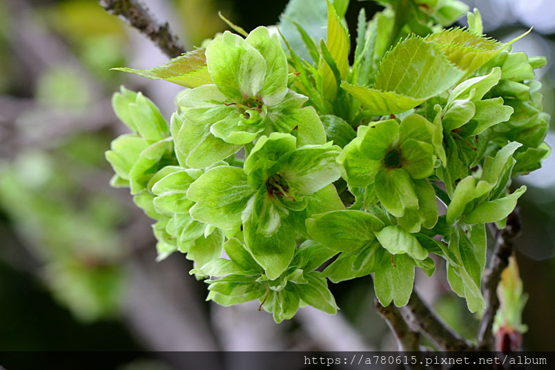 櫻花不一定是要粉紅的,有一種綠色櫻花御衣黃,花期比粉紅櫻