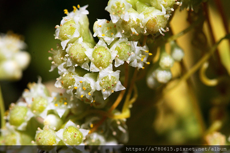 與花冠等長,花冠白色,5裂,呈短鐘型。花期7~9月。