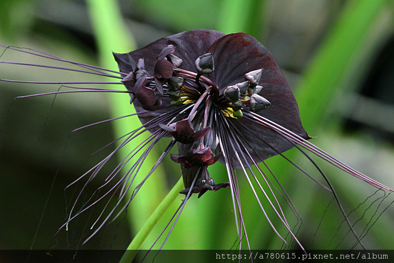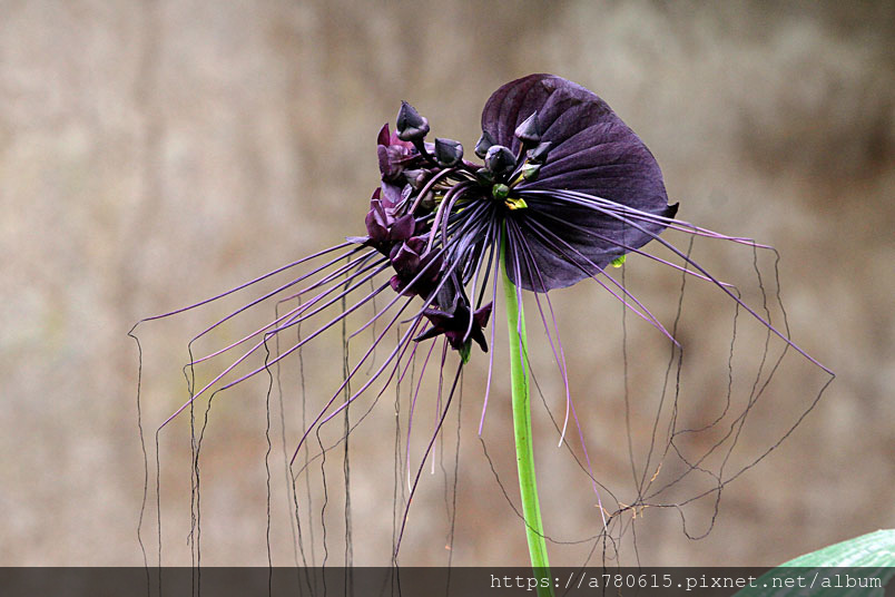 蝙蝠花並沒一般花卉的鮮艷明亮的花色,棕黑色並不討喜,因