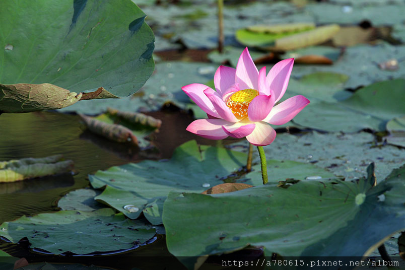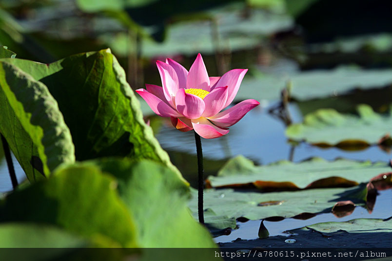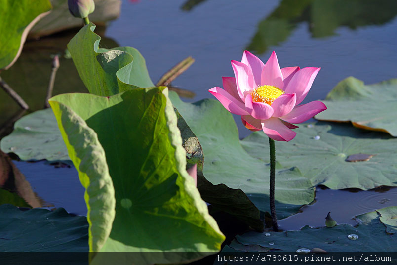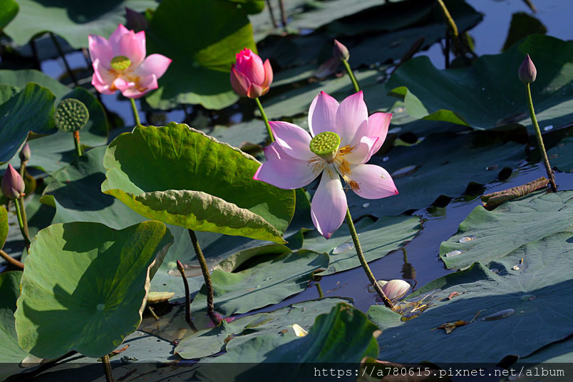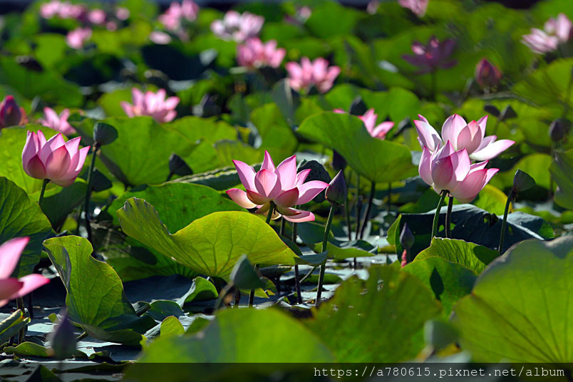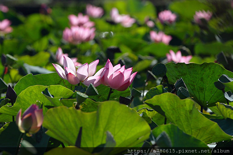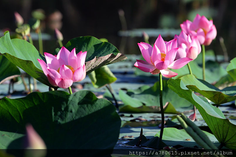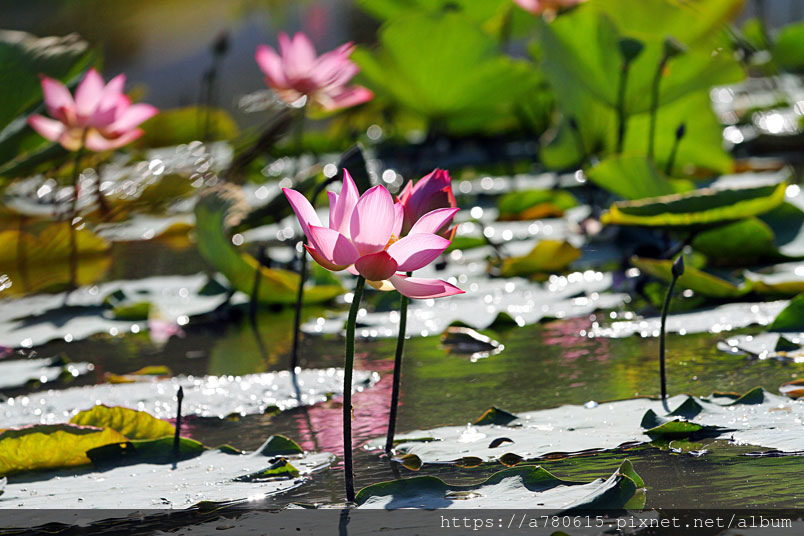 我一向習慣清晨去拍荷花,當太陽漸漸爬升越過山頭,陽光灑