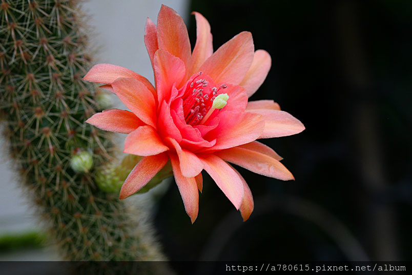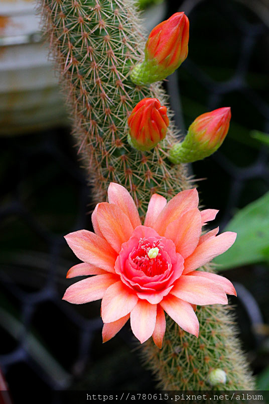 好友是綠手指,種了滿園的美花卉,現在正值金鈕仙人掌花開,非