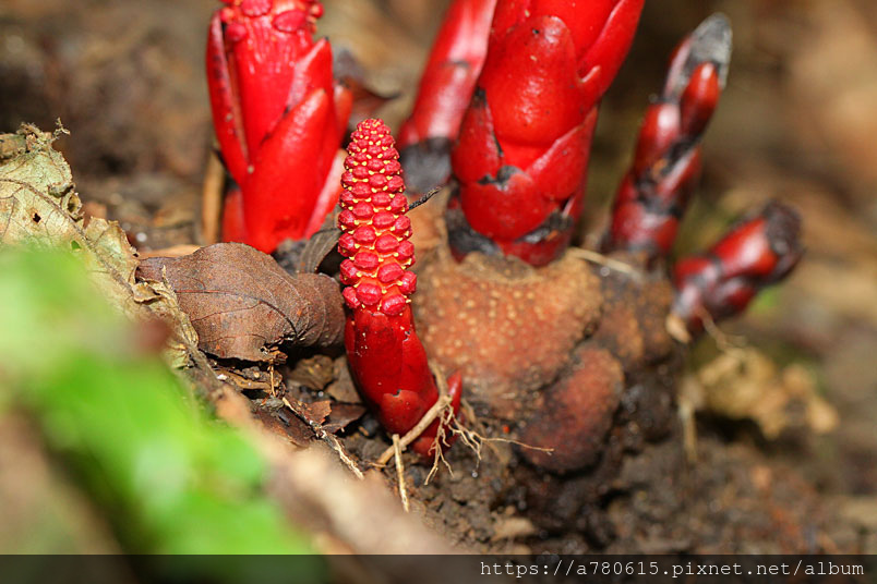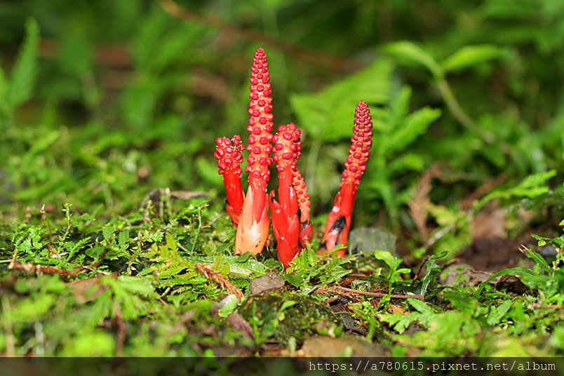 穗花蛇菰屬於蛇菰科寄生植物,一年至多年生紅色草本、全株肉