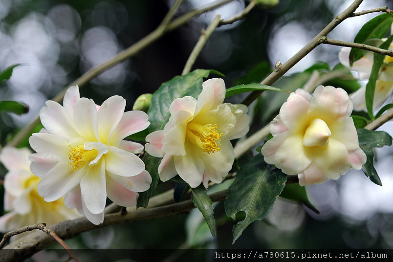 茶花別名:山茶花、海石榴、曼陀花。主幹直立,樹皮深褐色,