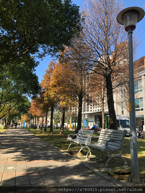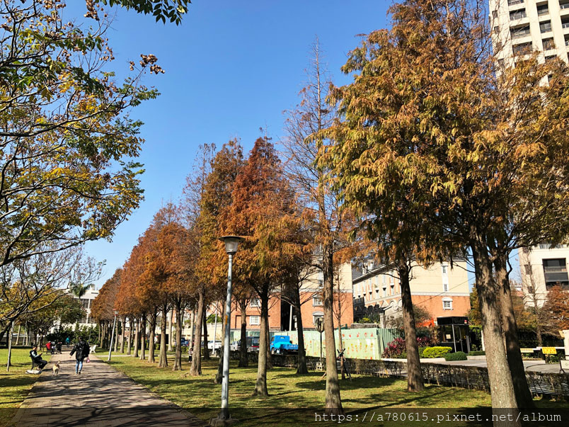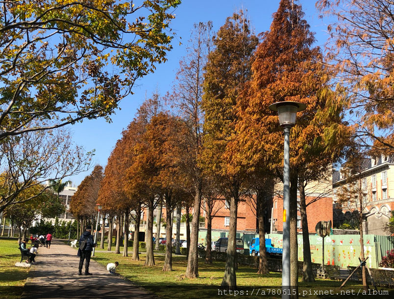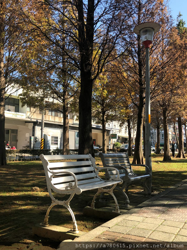 不管是坐在鐵椅上享受冬陽的照拂,或是漫步在落羽松下,都能