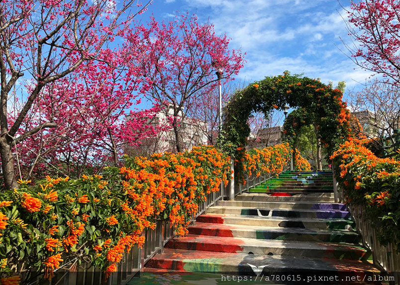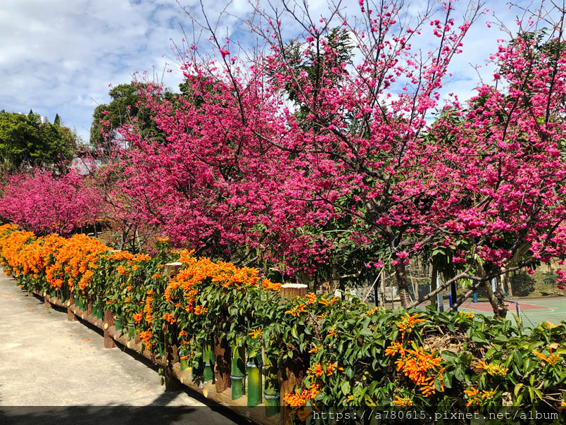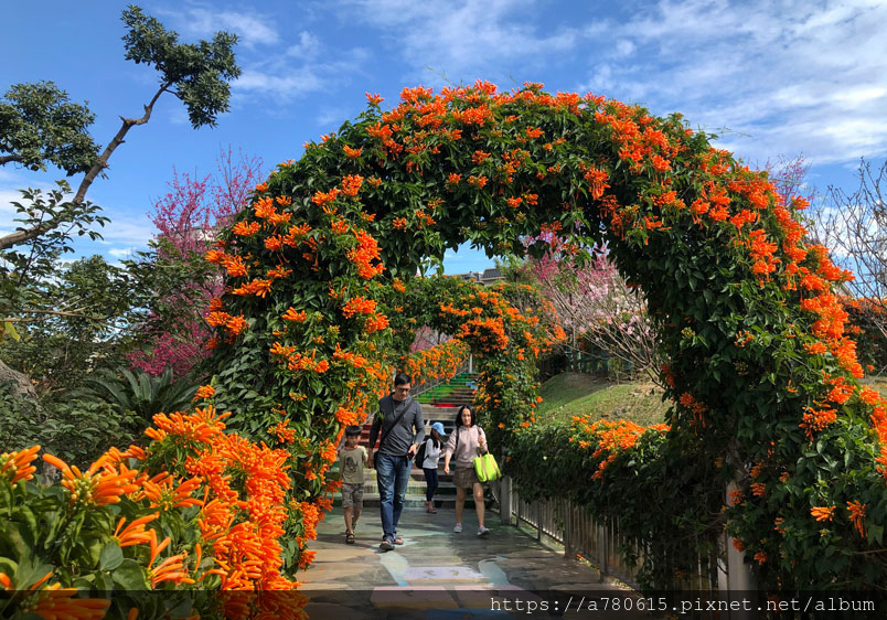 位於新北市鶯歌區鶯桃路294號的永吉公園,不讓銅鑼炮仗花