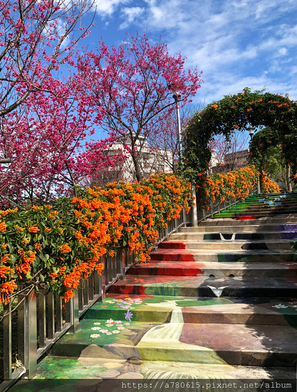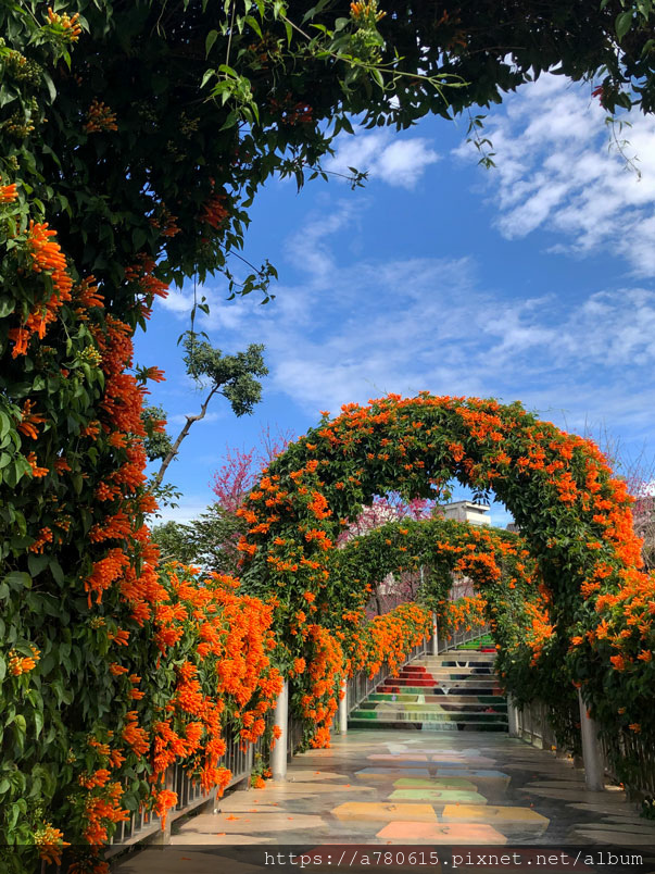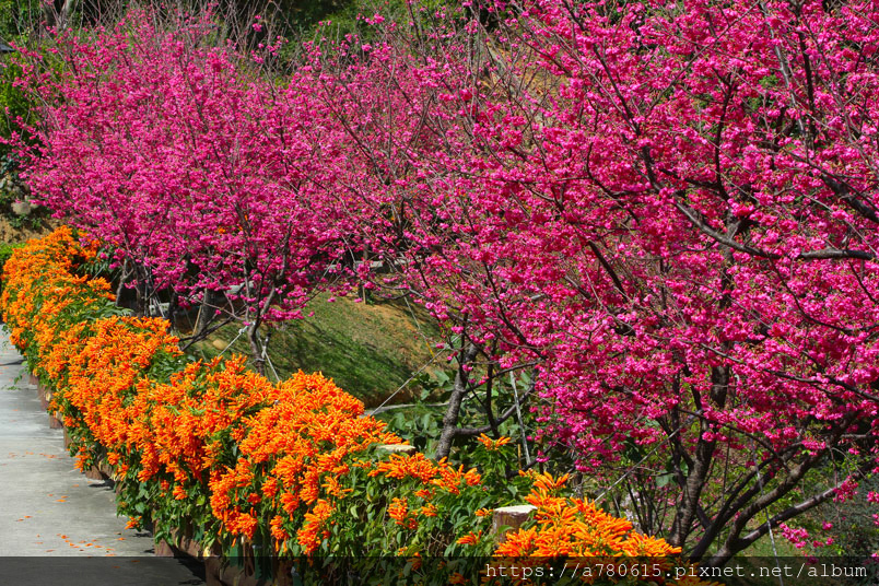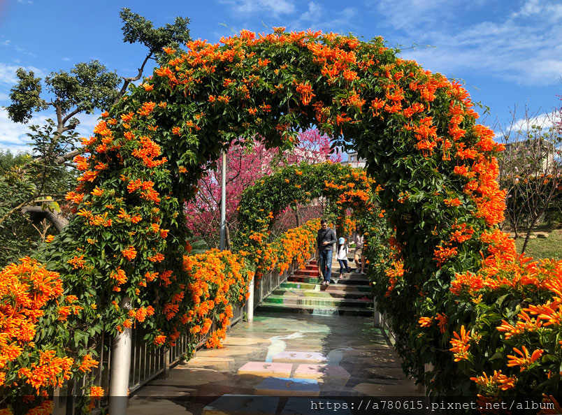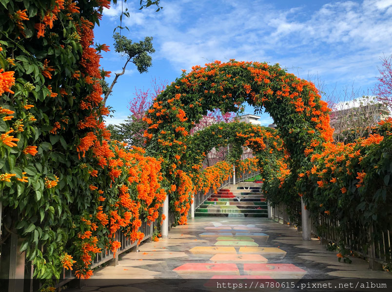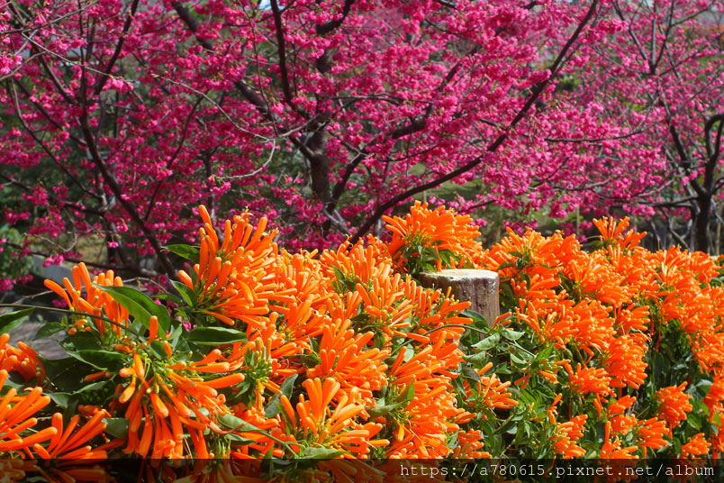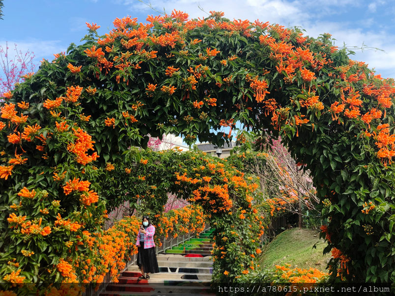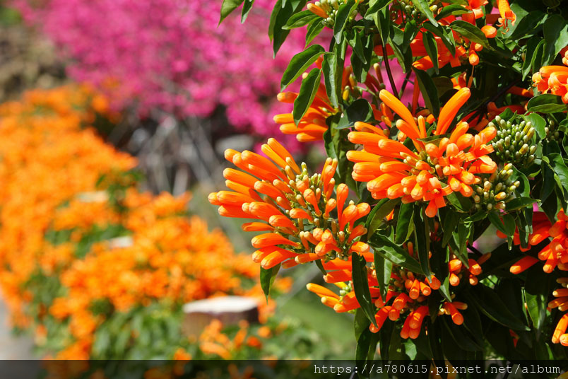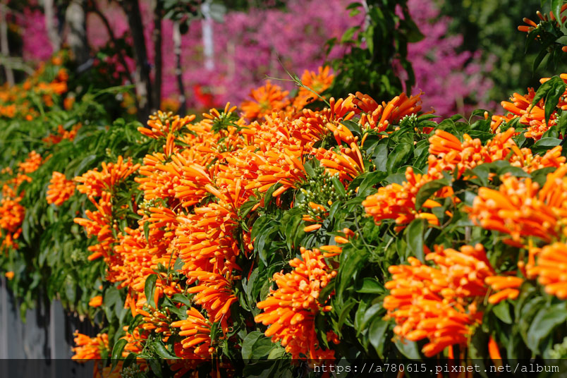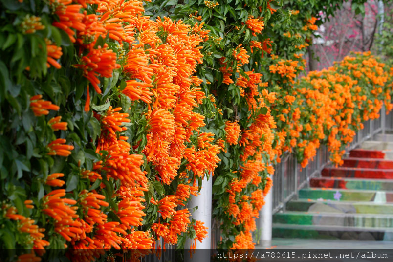 專美於前,目前也盛開了,一整片爭美鬥艷的橘色花牆,顯得