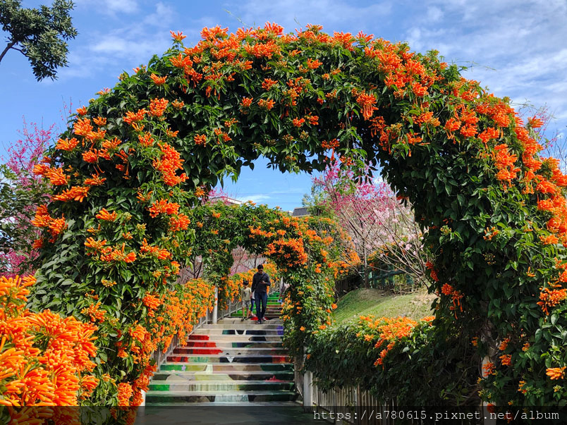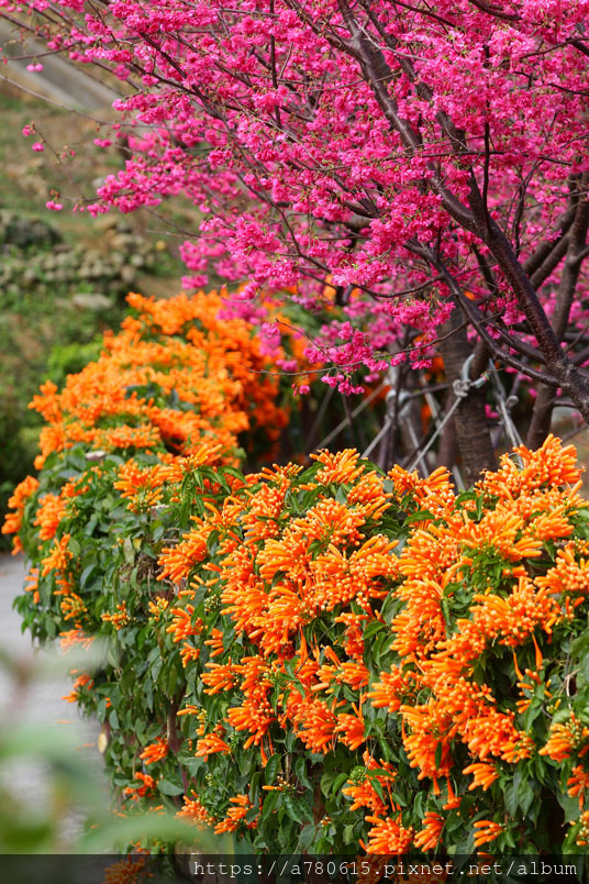 炮仗花也正巧在這迎春時節,燦爛於大地中綻放,增添喜氣洋洋