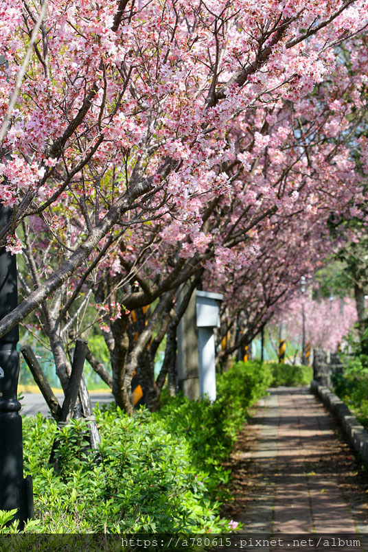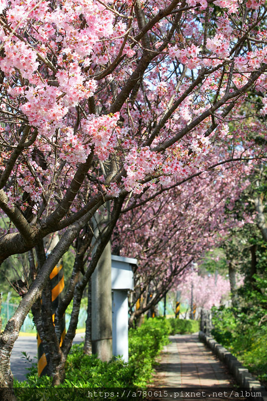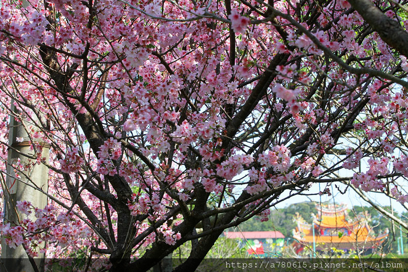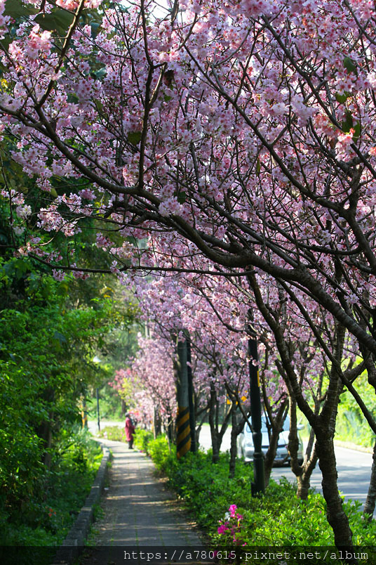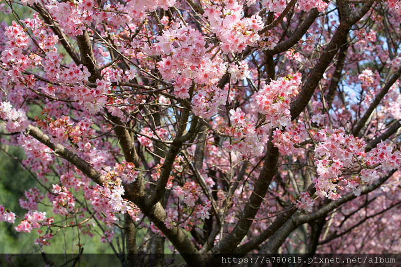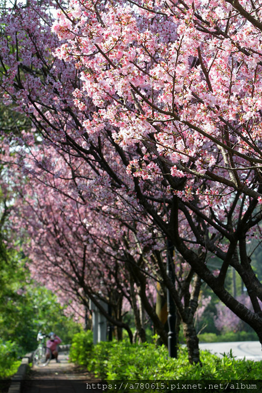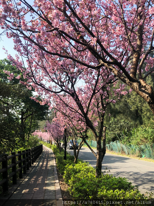 定期的照護櫻花樹,才能在今年過年期間看到如此茂盛的櫻花。