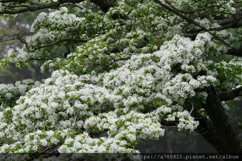 「四月雪」之稱的流蘇花近日進入花期,茂密的小白花像雪般幾乎