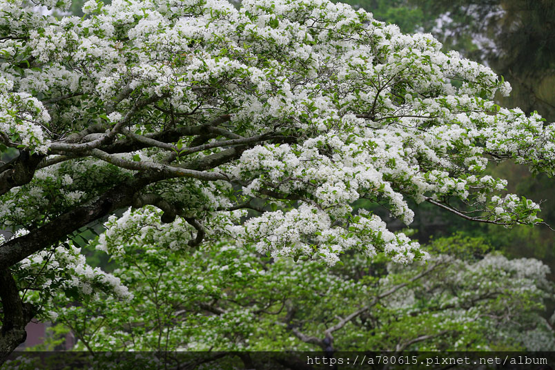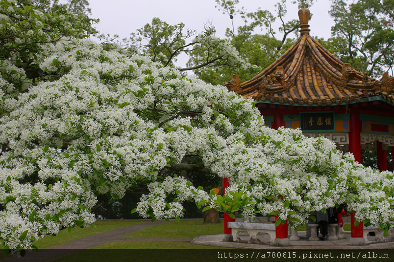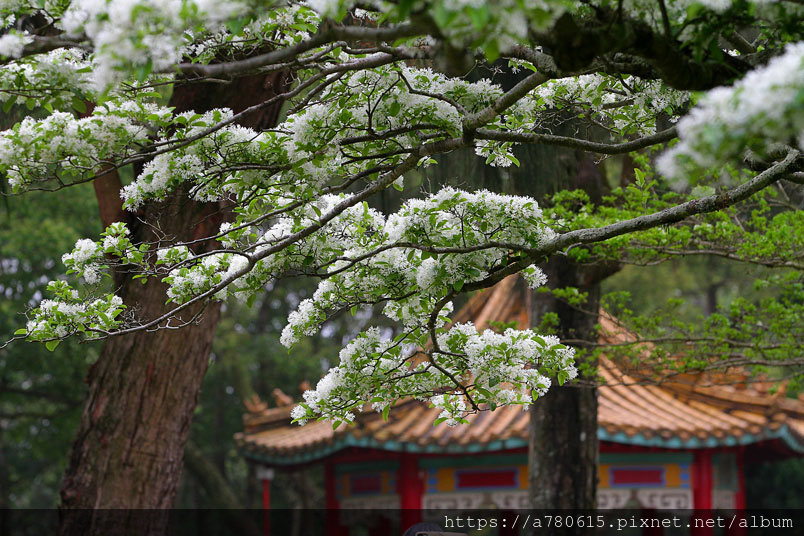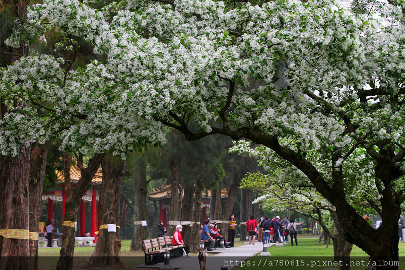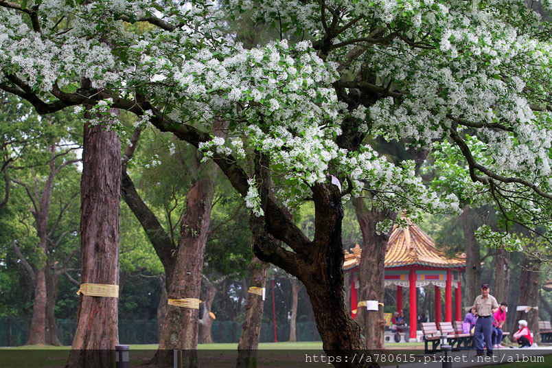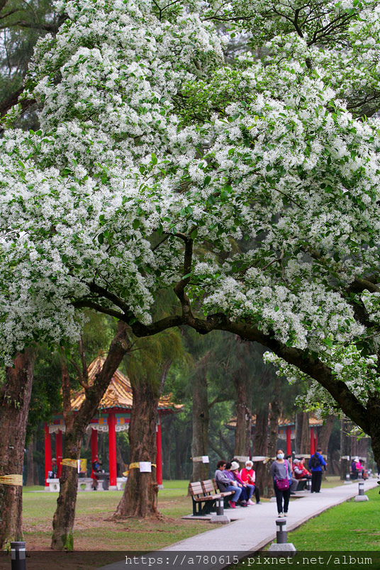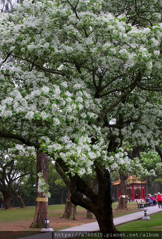 流蘇樹形優美,枝幹堅實不易風折且少病蟲害,春季時滿樹白花勝