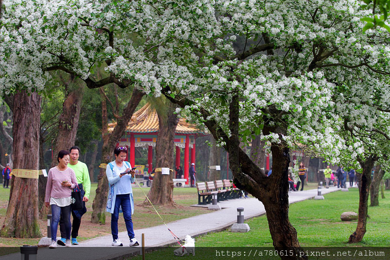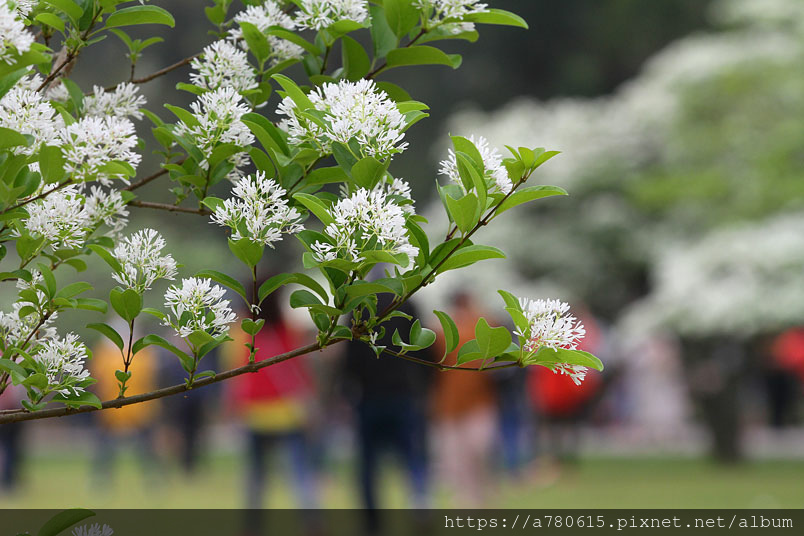 覆蓋樹枝,雖然僅有兩株花開的比較茂密,但仍吸引很多遊客來拍
