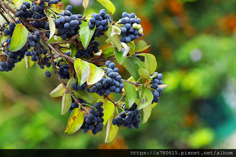 、9月,一顆顆橢圓形的果實由綠色轉為藍紫色,而後成熟掉落,並
