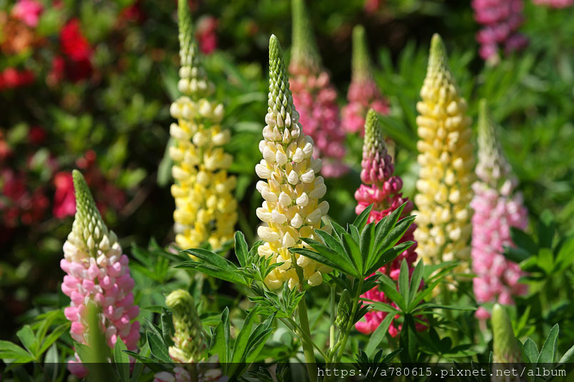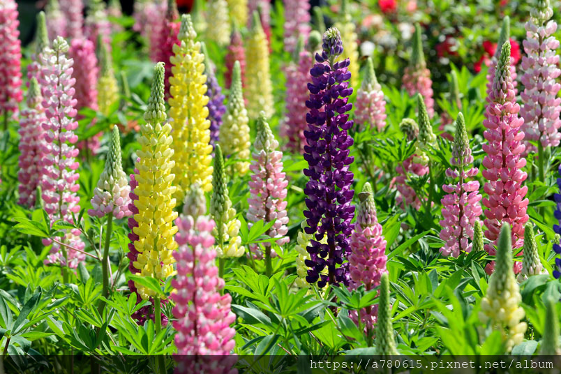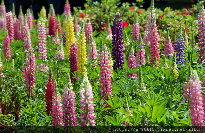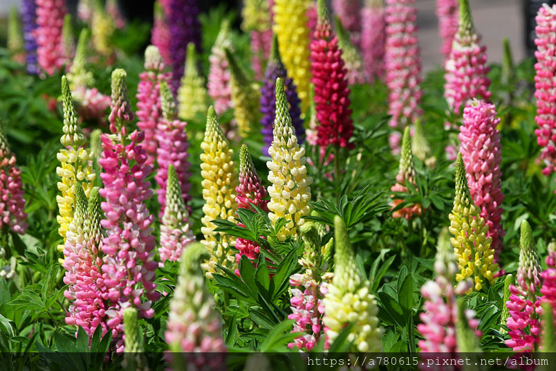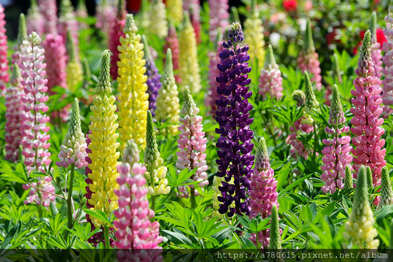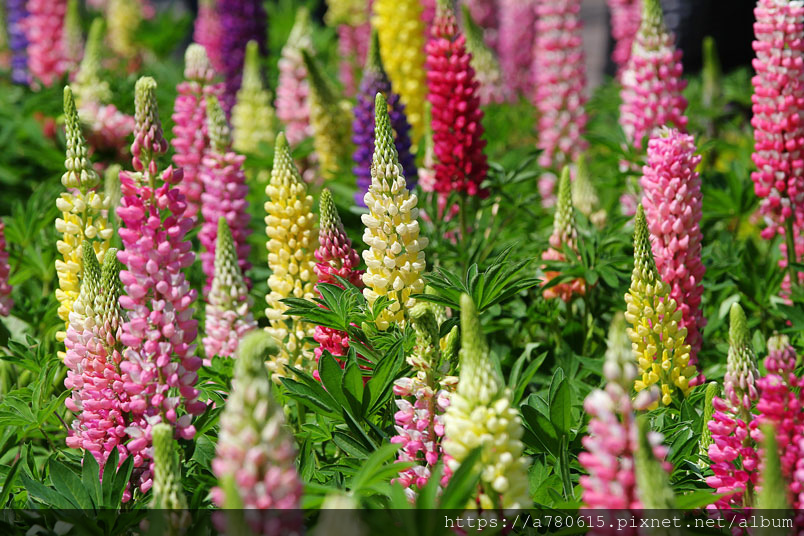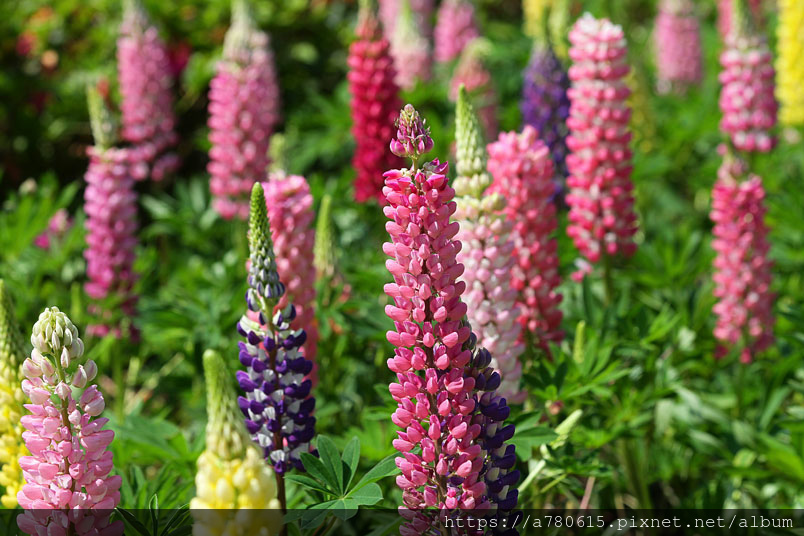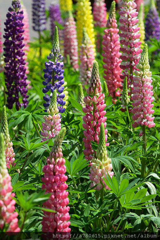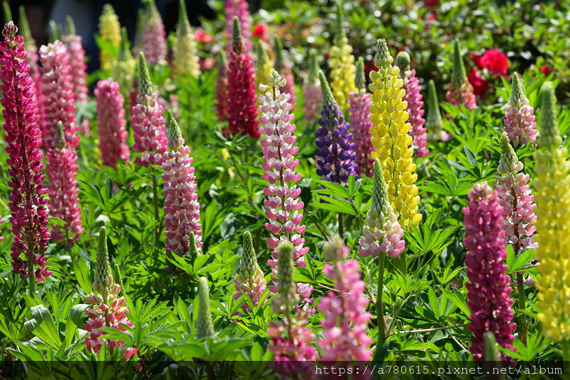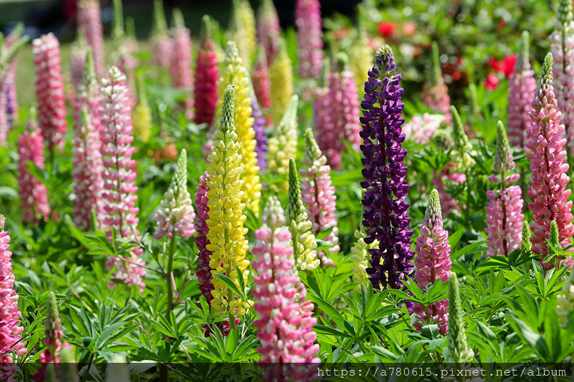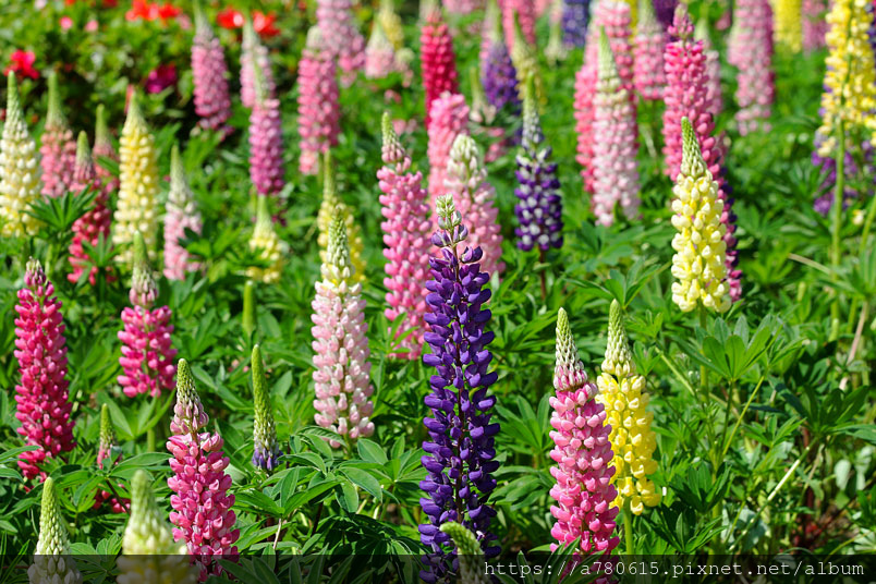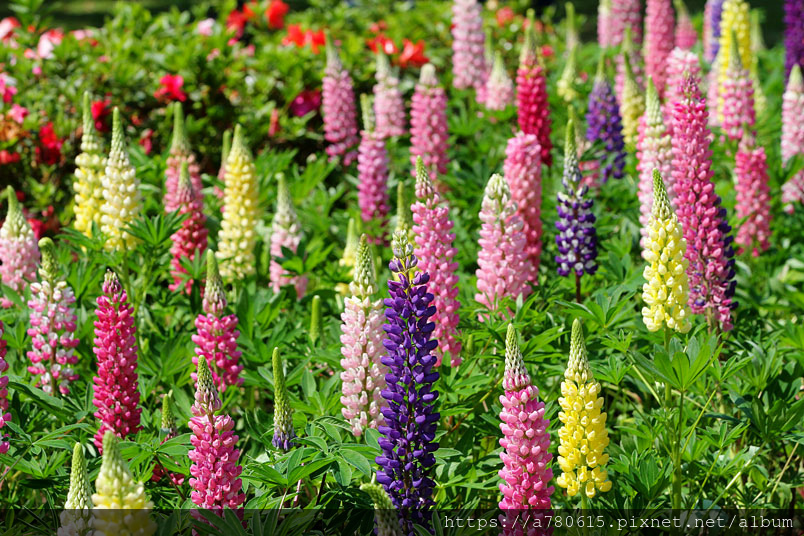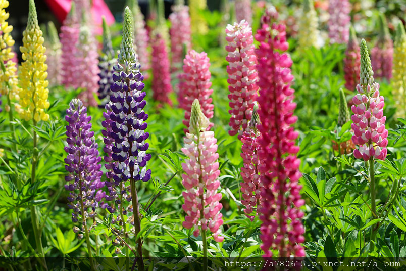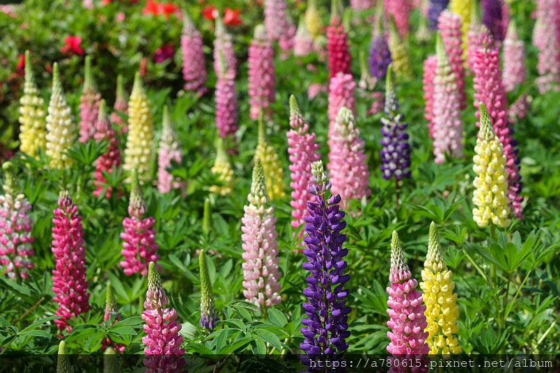 邊,就有五顏六色的魯冰花供人欣賞拍照。這裡的魯冰花與種在