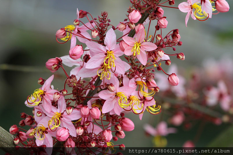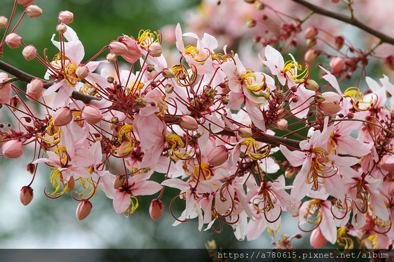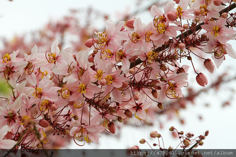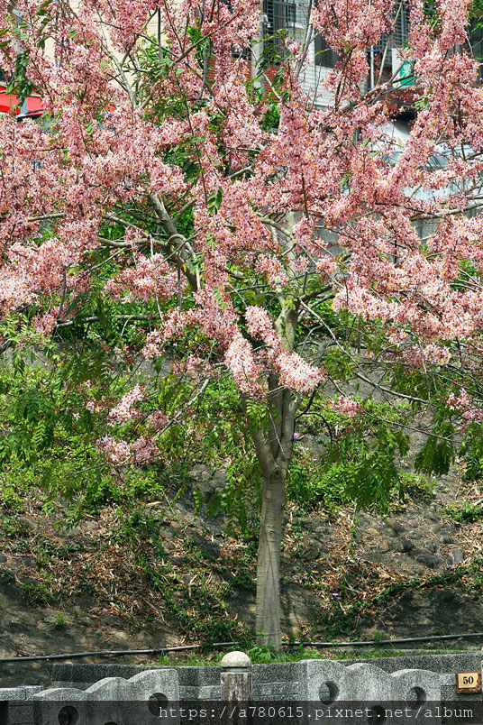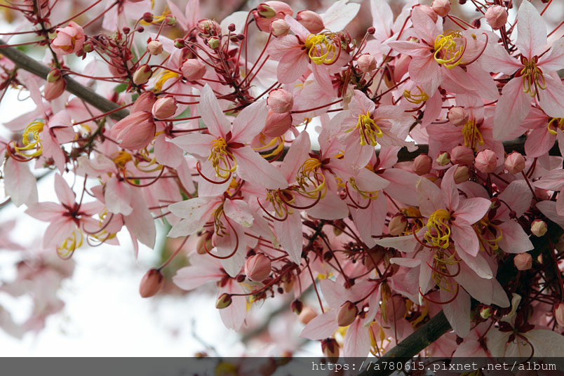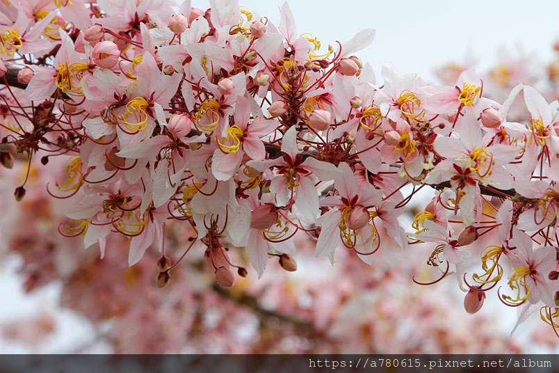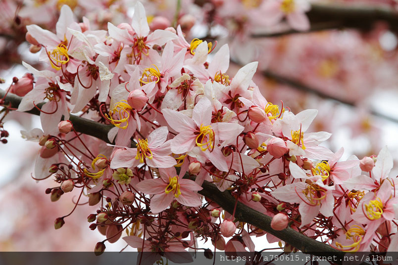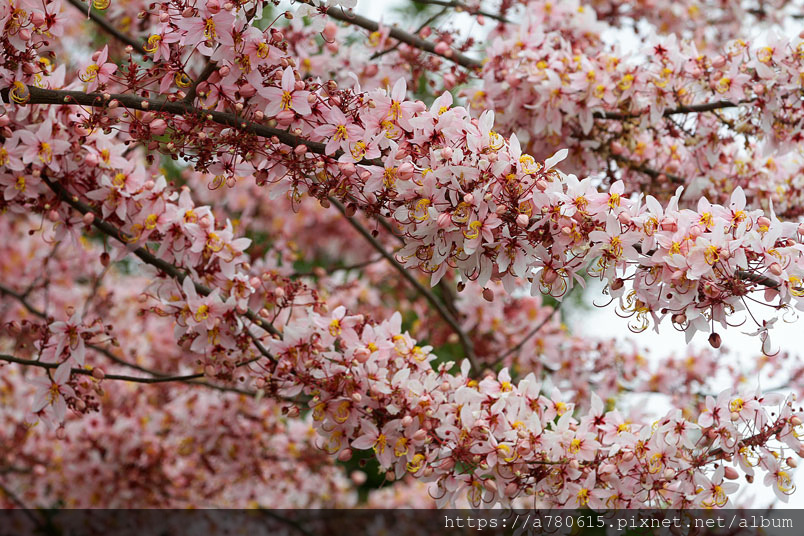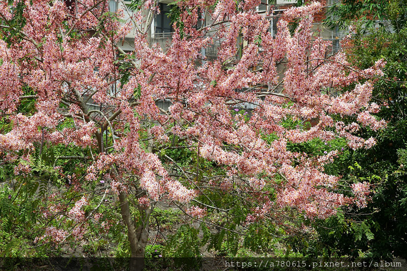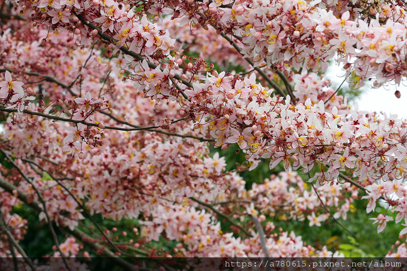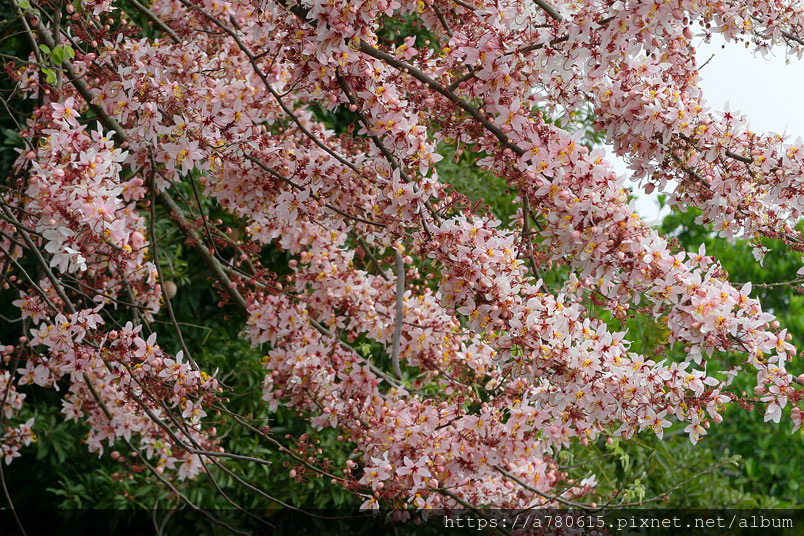花旗木又稱泰國櫻花、平地櫻花、桃紅陣雨樹,原生於泰國及東南