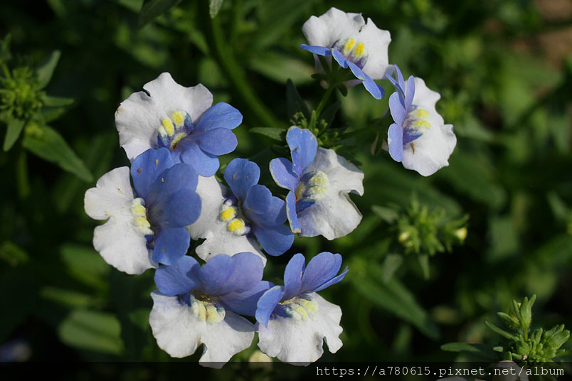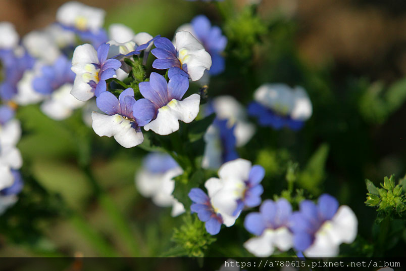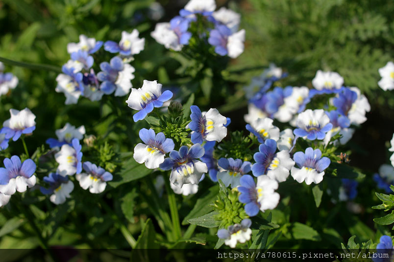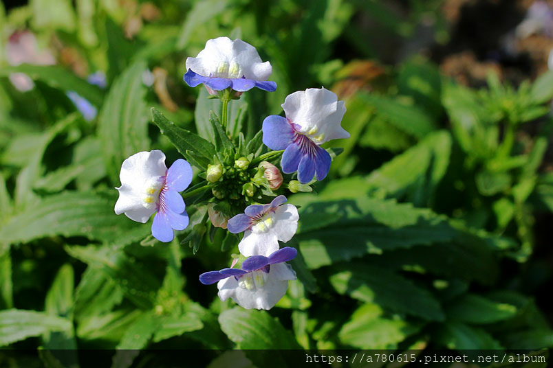 龍面花,別名:囊距花、愛蜜西、耐美西亞。原產南非,玄參科草