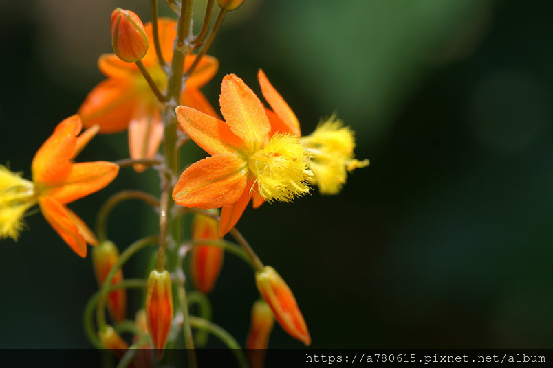 花莖頂生,總狀花序,花被片6,雄蕊具長茸毛;花期為春末或夏