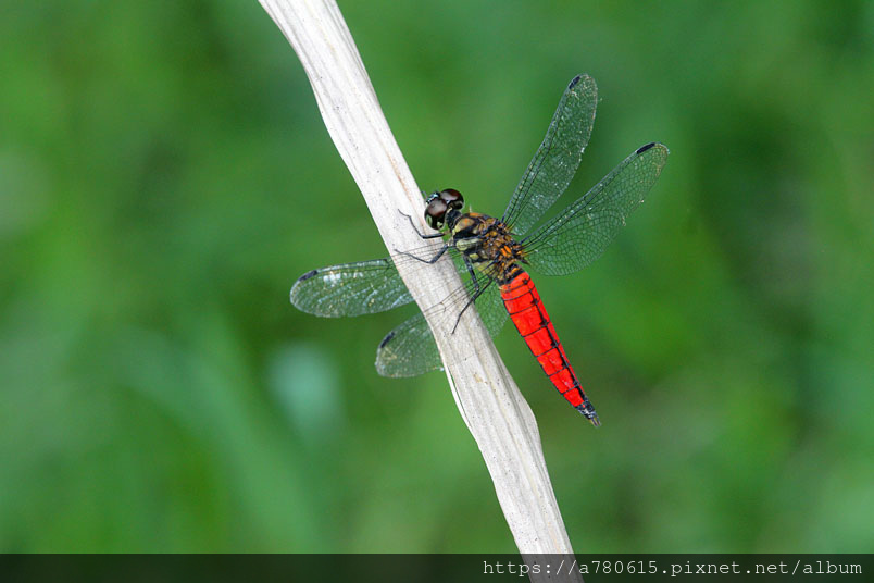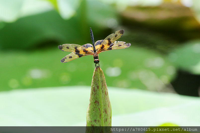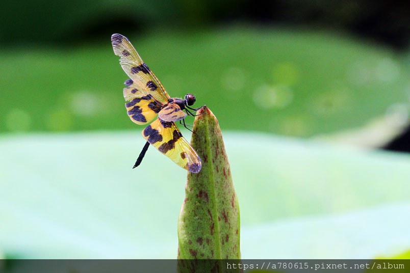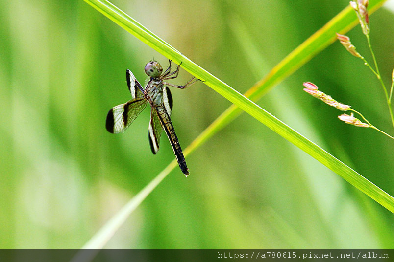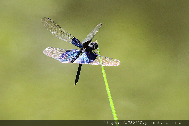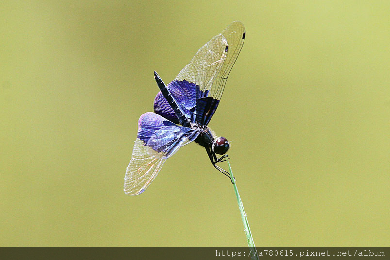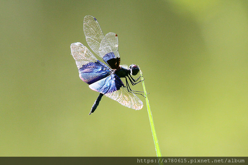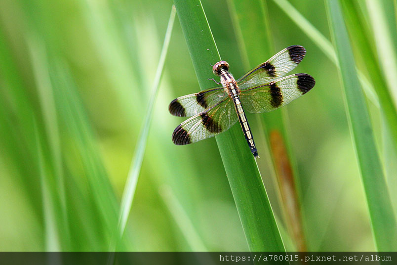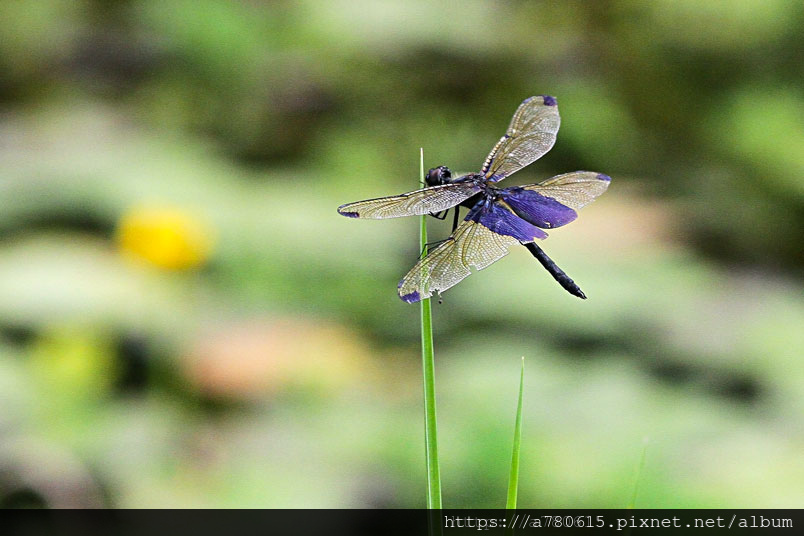 彩裳蜻蜓,分布於低海拔山區之清淨池塘或沼澤,具有環境指標的
