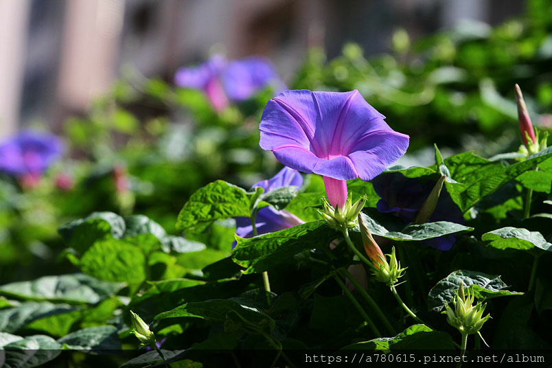 晨天亮太陽升起綻放亮紫色花朵,下午花朵逐漸變色成粉紫色,一